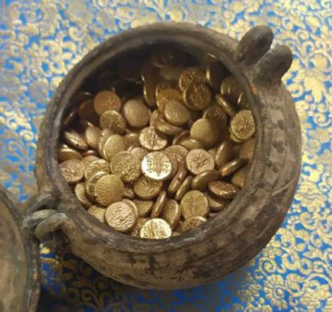 ତିରୁଚିରାପଲି,୨୭।୨: ତାମିଲନାଡୁର ତିରୁଚିରାପଲି ଜିଲା ଥିରୁଭାନୈକଭଲ ନିକଟରେ ଥିବା ଜମ୍ବୁକେଶ୍ୱର ମନ୍ଦିର ନିକଟରେ ଖନନ ଚାଲିଥିବା ବେଳେ ମାଟିତଳୁ ୫୦୫ଟି ସ୍ବର୍ଣ୍ଣମୁଦ୍ରା ମିଲିଥିବା ଜଣାପଡିଛି। ଏହାର ଓଜନ ରହିଛି ୧.୭୧୬ କିଲୋଗ୍ରାମ। ବୁଧବାର ଶ୍ରମିକମାନେ ଜମ୍ବୁକେଶ୍ୱର ମନ୍ଦିର କାମ ପାଇଁ ଏହା ପରିସରରେ ଥିବା ମାଟି ଖୋଳିବା ସମୟରେ ପ୍ରାୟ ୭ ଫୁଟ ତଳେ ଏକ ତମ୍ବା ପାତ୍ର ମିଳିଥିଲା। ଆଉ ତା’ ମଧ୍ୟରେ ଉକ୍ତ ସ୍ବର୍ଣ୍ଣମୁଦ୍ରା ଗୁଡିକ ଥିବା ଦେଖାଯାଇଥିଲା। ଏଥିରେ ଆରବିକ ଭାଷା ଲେଖାଯାଇଥିବା ବେଳେ ଏହା ୧୦୦୦-୧୨୦୦ ଖ୍ରୀଷ୍ଟାବ୍ଦର ବୋଲି କୁହାଯାଉଛି। ଆନୁମାନିକ ଭାବେ ଏହାର ମୂଲ୍ୟ ୬୮ଲକ୍ଷ ଟଙ୍କା ହେବ ବୋଲି କୁହାଯାଉଛି। ପୋଲିସ ଉପସ୍ଥିତରେ ଏହାକୁ ଗଣନା କରାଯାଇ ସଂରକ୍ଷିତ ରଖାଯାଇଛି।