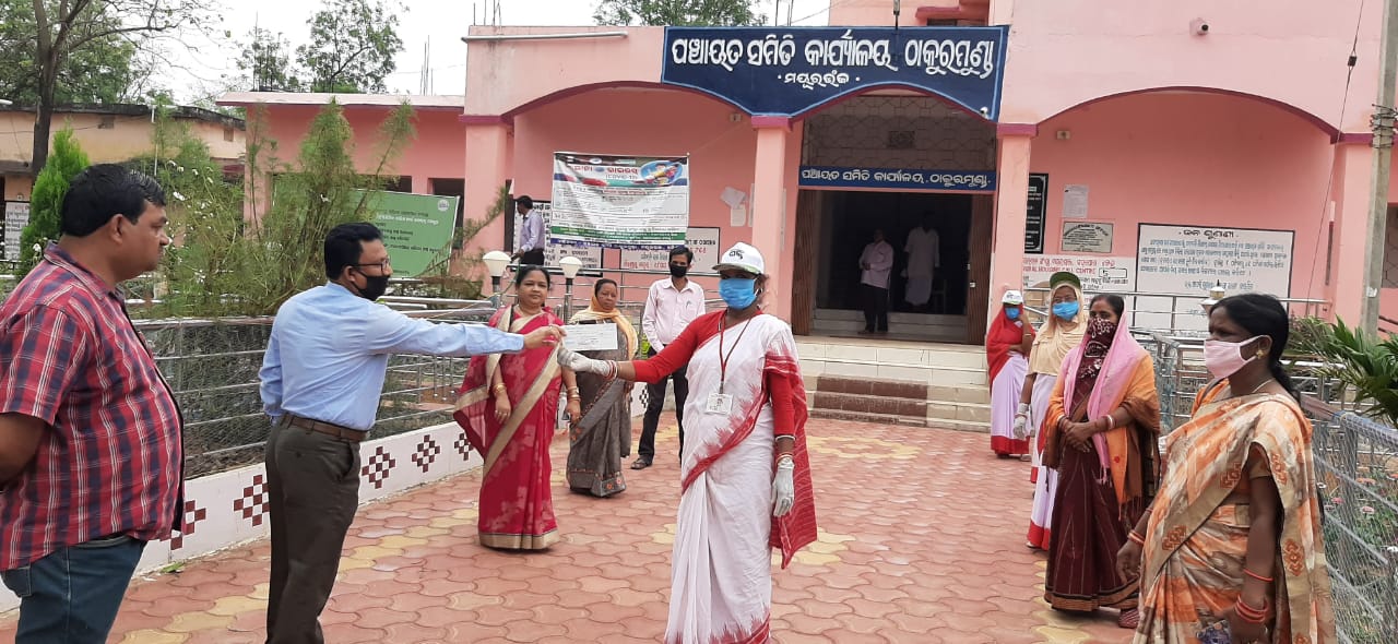ଠାକୁରମୁଣ୍ଡା,୯ା୪(ଡି.ଏନ୍.ଏ.): ମୟୂରଭଞ୍ଜ ଜିଲା ଠାକୁରମୁଣ୍ଡା ବ୍ଲକ ଅଧୀନ ନାରୀ ଶକ୍ତି ସ୍ବୟଂ ସହାୟିକା ଗୋଷ୍ଠୀ ପକ୍ଷରୁ ବୁଧବାର କରୋନା ମୁକାବିଲା ନିମନ୍ତେ ମୁଖ୍ୟମନ୍ତ୍ରୀଙ୍କ ରିଲିଫ ପାଣ୍ଠିକୁ ୧୦,୦୫୧ ଟଙ୍କାର ଚେକ୍ ପ୍ରଦାନ କରାଯାଇଛି। ଠାକୁରମୁଣ୍ଡା ଗୋଷ୍ଠୀ ଉନ୍ନୟନ ଅଧିକାରୀ ଶ୍ୟାମସୁନ୍ଦର ଟୁଡୁଙ୍କ ଜରିଆରେ ଏହି ସହାୟତା ପ୍ରଦାନ କରାଯାଇଛି। ସ୍ବୟଂ ସହାୟିକା ଗୋଷ୍ଠୀର ସଭାପତି ସୁଶୀଳା ସାହୁ, ସମ୍ପାଦିକା ଅଫସରୀ ବେଗମଙ୍କ ସମେତ ଅନ୍ୟ ସଦସ୍ୟାମାନେ ସହାୟତା ପ୍ରଦାନ କରିଥିଲେ। ଏହି ସମୟରେ ତହସିଲଦାର ପ୍ରଦ୍ୟୁମ୍ନ କୁମାର ନାୟକ, ସିଡିପିଓ ଏବଂ ମିଶନ ଶକ୍ତିର ଅଧିକାରୀ ମାନେ ଉପସ୍ଥିତ ଥିଲେ।