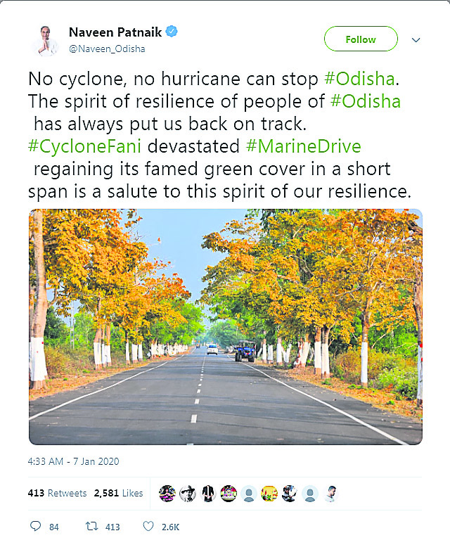 ଭୁବନେଶ୍ୱର, ୮।୧(ବ୍ୟୁରୋ):ସାମୁଦ୍ରିକ ଝଡ଼ ଫନୀ ଉପକୂଳ ଓଡ଼ିଶାର ବହୁତ କ୍ଷତି ସାଧନ କରିଥିଲା। ବିଶେଷ କରି ପୁରୀ ଜିଲାକୁ ବହୁଳ କ୍ଷତି ପହଞ୍ଚାଇଥିଲା। ପର୍ଯ୍ୟଟନର ପ୍ରଶସ୍ତ ମାର୍ଗ ପୁରୀ-କୋଣାର୍କ ମେରାଇନ୍ ଡ୍ରାଇଭ ମଧ୍ୟ କ୍ଷତିଗ୍ରସ୍ତ ହୋଇଥିଲା। ବାଲୁଖଣ୍ଡର ହଜାର ହଜାର ଗଛ ଉପୁଡିଯିବା ସହ ପଶୁପକ୍ଷୀ ମଧ୍ୟ ପ୍ରଭାବିତ ହୋଇଥିଲା। ହେଲେ ଏହି ଝଡର ପ୍ରାୟ ୮ ମାସ ପରେ ଏହି ମାର୍ଗ ପୂର୍ବ ସୌନ୍ଦର୍ଯ୍ୟ ଫେରି ପାଇଛି। ଏହି ମାର୍ଗର ଏକ ସୁନ୍ଦର ଫଟୋ ମୁଖ୍ୟମନ୍ତ୍ରୀ ନବୀନ ପଟ୍ଟନାୟକଙ୍କ ଟୁଇଟର୍ ହ୍ୟାଣ୍ଡେଲରୁ ପୋଷ୍ଟ କରାଯାଇଛି। କୌଣସି ଝଡକୁ ସମ୍ମୁଖୀନ ହୋଇ ପୁଣି ଉଠିବାର ସାମର୍ଥ୍ୟ ଓଡ଼ିଶା ଜନସାଧାରଣଙ୍କ ଅଛି ବୋଲି ମୁଖ୍ୟମନ୍ତ୍ରୀ ଏହି ଟୁଇଟ୍ରେ ଉଲ୍ଲେଖ କରିଛନ୍ତି।