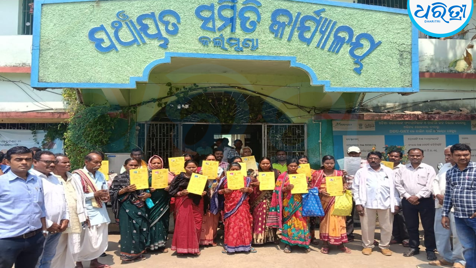 କର୍ଲାମୁଣ୍ଡା:୧୮।୩(ପ୍ରଦୀପ କୁମାର ସାହୁ): କଳାହାଣ୍ଡି ଜିଲା କର୍ଲାମୁଣ୍ଡା ବ୍ଲକର ବିଭିନ୍ନ ଗାଁର ୧୪ ଆଦିବାସୀ ପରିବାରଙ୍କୁ ରାଜସ୍ବ ବିଭାଗ ପକ୍ଷରୁ ମୋ ଜଙ୍ଗଲ ଜମି ଯୋଜନାରେ ମଙ୍ଗଳବାର ଜମି ପଟ୍ଟା ପ୍ରଦାନ କରାଯାଇଛି। ଏହି ଅବସରରେ ବ୍ଲକ ସମ୍ମିଳନୀ କକ୍ଷଠାରେ ତହସିଲଦାର ଅରୁଣବର୍ଗେ, ବ୍ଲକ ଉପାଧ୍ୟକ୍ଷ ସୁରେନ୍ଦ୍ର ଭୋଇ, କର୍ଲାମୁଣ୍ଡା ବ୍ଲକ ଦାୟିତ୍ୱ ରେ ଥିବା ମଙ୍ଗଳ ସମ୍ପ୍ରସାରଣ ଅଧିକାରୀନୀ ଭୂମିସୁତା ମାଝୀ,ଗ୍ରାମ ପଞ୍ଚାୟତ ଉନ୍ନୟନ ଅଧିକାରୀ ସାଗତ କୁମାର ପାଣିଗ୍ରାହୀ ପ୍ରମୁଖ ଯୋଗ ଦେଇ ରାଜପୁର ପଞ୍ଚାୟତ ଗୋଇନ୍ଦାମୁଣ୍ଡା ଗ୍ରାମ ର ୫ ଟି ପରିବାର ଓ ଜୋରାଡବରା ପଞ୍ଚାୟତ ଟେର୍ଚାପଲା ଗ୍ରାମର ୯ ଟି ପରିବାରକୁ ଜମି ପଟ୍ଟା ବଣ୍ଟନ କରିଥିଲେ।ଏହା ସହିତ ଗୋଇନ୍ଦାମୁଣ୍ଡା ଗ୍ରାମ ସଭାକୁ ଗୋଷ୍ଠୀ ଗତ ଅଧିକାର ଓ ଗୋଷ୍ଠୀ ସମ୍ବଳ ଅଧିକାର ରେ ୪୩.୨୦୦ ଏକର ପଟ୍ଟା ଦିଆଯାଇଥିବା ଜଣାପଡିଛି। ଏଥିରେ ଜଙ୍ଗଲ ରେ ନିଆଁ ନ ଲଗେଇବାପାଇଁ ତଥା ଜଙ୍ଗଲ ସୁରକ୍ଷା, ସଂରକ୍ଷଣ କରିବା ଉପରେ ଅଧିକାରୀ ମାନେ ସଚେତନ କରିଥିଲେ।କାର୍ଯ୍ୟକ୍ରମ ରେ ସଂଯୋଜକ ମୋତିଲାଲ ସାହୁ ପରିଚାଳନା କରିଥିଲେ।
