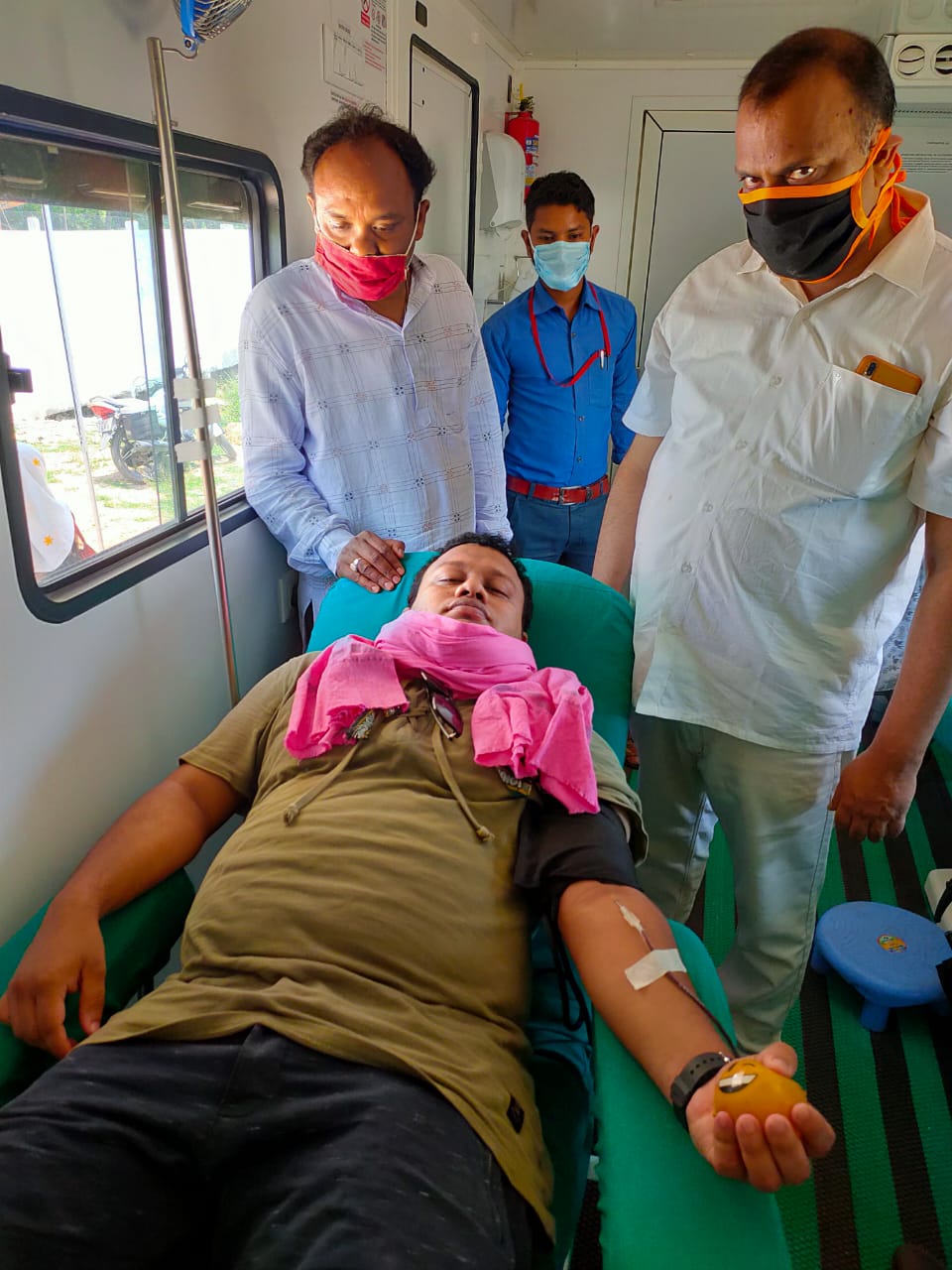 ବରଗଡ଼ ଅଫିସ୍,୧।୫: ଲକ୍ ଡାଉନ୍ ଯୋଗୁ ବିଭିନ୍ନ ରକ୍ତ ଭଣ୍ଡାରରେ ରକ୍ତର ଅଭାବ ପରିଲକ୍ଷିତ ହୋଇଛି । ଏହି କ୍ରମରେ ବରଗଡ଼ ଜିଲା ଭାଜପା ପକ୍ଷରୁ ଶୁକ୍ରବାର ଦଳୀୟ କାର୍ଯ୍ୟାଳୟରେ ଏକ ରକ୍ତଦାନ ଶିବିର ଆୟୋଜନ କରାଯାଇଥିଲା। ଶିବିରରେ ୨୭ୟୁନିଟ୍ ରକ୍ତ ସଂଗୃହୀତ ହୋଇଛି । ଶିବିରରେ ଭାଜପା ଜିଲା ସଭାପତି ଅଶ୍ୱିନୀ ଷଡ଼ଙ୍ଗୀ, ବରିଷ୍ଠ ନେତା ଭରତ ବେହେରା ପ୍ରମୁଖ ଉପସ୍ଥିତ ରହି ରକ୍ତଦାନ କରିଥିବା ସ୍ବେଚ୍ଛାସେବୀଙ୍କୁ ଉତ୍ସାହିତ କରିଥିଲେ। ରକ୍ତ ଭଣ୍ଡାରର ଆବଶ୍ୟକତା ପୂରଣ କରିବାରେ ଏହା ସହାୟକ ହୋଇଛି।