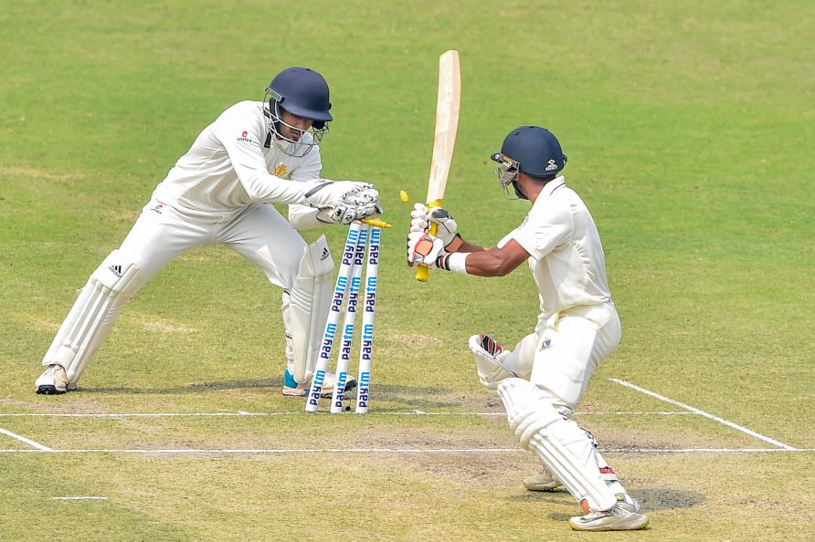 (ଚାଟାର୍ଜୀ- ୮୧, ରିଦ୍ଧିମାନ- ୬୪, ମଜୁମ୍ଦାର- ୫୮*, ନନ୍ଦୀ- ୨୮*, ଧର୍ମେନ୍ଦ୍ରସିନ ଜାଡେଜା- ୨/୧୦୬, ପ୍ରେରକ ମଙ୍କଡ- ୨/୪୫, ସାକରିୟା- ୧/୫୨, ଜାନୀ- ୧/୩୨)।