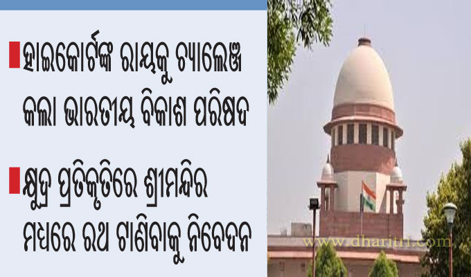 ପୂର୍ବରୁ ବିକାଶ ପରିଷଦ ପକ୍ଷରୁ ମଧ୍ୟ ସୁପ୍ରିମକୋର୍ଟରେ ଏକ ମାମଲା କରାଯାଇଥିଲା। ସାମାଜିକ ଦୂରତା ରକ୍ଷା କରି ରଥଯାତ୍ରା କରିବା ସମ୍ଭବ ନୁହେଁ ଦର୍ଶାଇ ସୁପ୍ରିମକୋର୍ଟ ଏ ଦିଗରେ ନିଷ୍ପତ୍ତି ନିଅନ୍ତୁ ବୋଲି ଅପିଲ କରାଯାଇଥିଲା। ସୋମବାର ପୁଣିଥରେ ପରିଷଦ ପକ୍ଷରୁ ପିଟିଶନ ଦାଖଲ କରାଯାଇଛି। ସେହିଭଳି ହାଇକୋର୍ଟରେ ମଧ୍ୟ ମାମଲା କରାଯାଇଥିଲା। ମାମଲାର ଶୁଣାଣି କରି ହାଇକୋର୍ଟ ଓଡିଶା ସରକାର ରଥଯାତ୍ରା ନିଷ୍ପତ୍ତି ନେବେ ବୋଲି କହିଥିଲେ। ମେଶିନ କିମ୍ବା ହାତୀ ଦ୍ୱାରା ରଥ ଟାଣିବା କଥା ସରକାର ବିଚାର କରିବେ ବୋଲି ରାୟରେ କୁହାଯାଇଥିଲା। ହାଇକୋର୍ଟଙ୍କ ଏହି ରାୟ ପରେ ଏବେ ସୁପ୍ରିମକୋର୍ଟଙ୍କ ଉପରେ ସମସ୍ତଙ୍କ ନଜର ରହିଛି। ଅନ୍ୟପକ୍ଷରେ ଜୁନ୍ ୨୩ରେ ରଥଯାତ୍ରା ଥିବାବେଳେ ଏପର୍ଯ୍ୟନ୍ତ ରାଜ୍ୟ ସରକାର କୌଣସି ନିଷ୍ପତ୍ତି ନେଇନାହାନ୍ତି।
