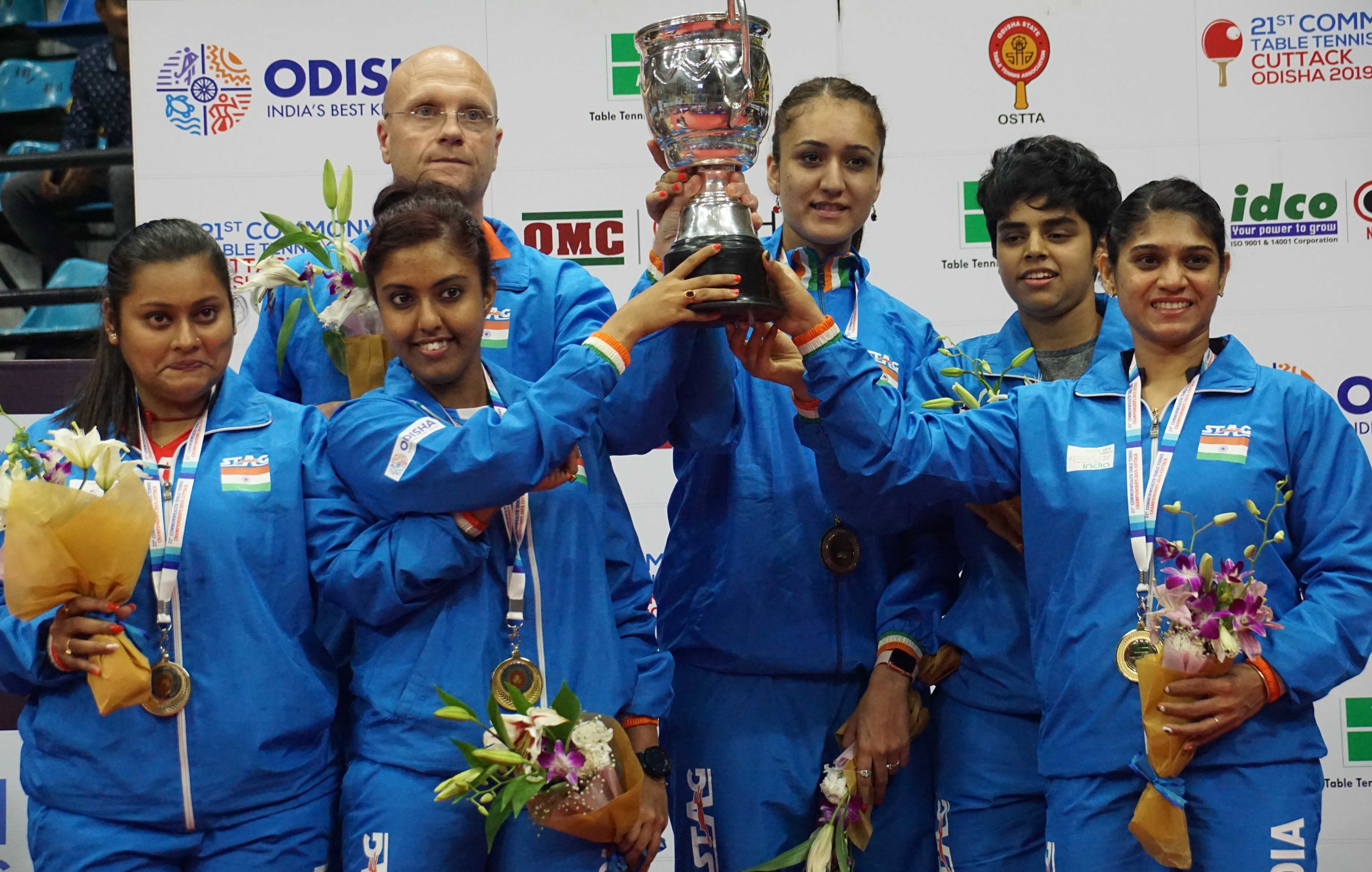 କଟକ ଅଫିସ,୨୦ା୭- ରାଜ୍ୟ ଗୋଷ୍ଠୀ ଟେବୁଲ ଟେନିସ କ୍ରୀଡ଼ାର ୨୧ ତମ ସଂସ୍କରଣରେ ଭାରତ ଦଳଗତ ଇଭେଣ୍ଟରେ ଡବଲ ସ୍ବର୍ଣ୍ଣ ପଦକ ବିଜୟୀ ହୋଇଛି । ଜବାହରଲାଲ ନେହେରୁ ଇନ୍ଡୋର ଷ୍ଟାଡିୟମରେ ଚାଲିଥିବା ଏହି ମେଗା ପ୍ରତିଯୋଗିତାର ଶୁକ୍ରବାର ଉଭୟ ପୁରୁଷ ଓ ମହିଳା ବିଭାଗରେ ଭାରତୀୟ ଦଳ ଚାମ୍ପିୟନ ହୋଇଛି । ଉଭୟ ବିଭାଗର ଫାଇନାଲରେ ଭାରତୀୟ ଦଳର ପ୍ରତିଦ୍ୱନ୍ଦୀ ଥିଲା ଇଂଲଣ୍ଡ । ମହିଳା ବିଭାଗରେ ୩-୦ ସେଟରେ ସହଜ ବିଜୟ ହାସଲ କରି ଦଳ ଚାମ୍ପିୟନ ହୋଇଥିବା ବେଳେ ପୁରୁଷ ବିଭାଗର ମୁକାବିଲା ସଂଘର୍ଷପୂର୍ଣ୍ଣ ରହିଥିଲା । ପ୍ରାରମ୍ଭରୁ ପଛରେ ପଡ଼ିଥିବା ଭାରତୀୟ ପୁରୁଷ ଦଳ ୩-୨ ସେଟରେ ଇଂଲଣ୍ଡକୁ ଫାଇନାଲରେ ହରାଇଥିଲେ । ଉଭୟ ବିଭାଗରେ ଇଂଲଣ୍ଡ ରୌପ୍ୟ ଓ ସିଙ୍ଗାପୁର ବ୍ରୋଞ୍ଜ ପଦକ ବିଜୟୀ ହୋଇଛନ୍ତି । ହାଇକୋର୍ଟର ମୁଖ୍ୟ ବିଚାରପତି କେ.ଏସ୍ ଝାବେରୀ, ଅଲିମ୍ପିଆନ ଶୁଟର ଅଭିନବ ବିନ୍ଦ୍ରା ପୁରସ୍କାର ବିତରଣୀ ଉତ୍ସବରେ ଅତିଥି ଭାବେ ଯୋଗ ଦେଇଥିଲେ । ମିକ୍ସଡ ଡବଲ୍ସ ଇଭେଣ୍ଟ ମଧ୍ୟ ଶୁକ୍ରବାର ସନ୍ଧ୍ୟାରୁ ଆରମ୍ଭ ହୋଇଛି । ଶୁକ୍ରବାର ଉଭୟ ବିଭାଗର ସେମିଫାଇନାଲ ମୁକାବିଲା ହୋଇଥିଲା । ମହିଳା ବିଭାଗର ପ୍ରଥମ ସେମିଫାଇନାଲ ଇଂଲଣ୍ଡ ଓ ନାଇଜେରିଆ ଭିତରେ ହୋଇଥିବା ବେଳେ ଇଂଲଣ୍ଡ ୩-୦ ସେଟରେ ବାଜିମାତ କରିଥିଲା । ଦ୍ୱିତୀୟ ସେମି ମୁକାବିଲାରେ ଭାରତ ୩-୦ ସେଟରେ ସିଙ୍ଗାପୁରକୁ ହରାଇ ଫାଇନାଲରେ ପ୍ରବେଶ କରିଥିଲା । ସେହିପରି ପୁରୁଷ ବିଭାଗର ସେମିଫାଇନାଲରେ ମଧ୍ୟ ଭାରତର ମୁକାବିଲା ହୋଇଥିଲା ସିଙ୍ଗାପୁର ସହ । ୩-୦ ସେଟରେ ଭାରତ ଉକ୍ତ ମ୍ୟାଚ୍କୁ ଜିତିଥିଲା । ଅନ୍ୟଏକ ସେମିଫାଇନାଲରେ ଇଂଲଣ୍ଡ ୩-୧ ସେଟରେ ମାଲେସିଆକୁ ପରାସ୍ତ କରିଥିଲା ।