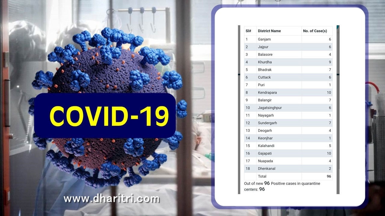 ଭୁବନେଶ୍ୱର, ୩୦।୫(ବ୍ୟୁରୋ): ରାଜ୍ୟରେ ଶନିବାର ଚିହ୍ନଟ ହୋଇଥିବା ୯୬ କରୋନା ସଂକ୍ରମିତ ୧୮ ଜିଲାର। ସେମାନଙ୍କ ମଧ୍ୟରୁ ସର୍ବାଧିକ ୧୦ ଜଣ ଲେଖାଏ କେନ୍ଦ୍ରାପଡ଼ା ଓ ଗଜପତି ଜିଲାର ରହି ରହିଛନ୍ତି। ସେହିପରି ଖୋର୍ଦ୍ଧା ଜିଲାର ୯ ଜଣ ରହିଥିବା ବେଳେ ଭଦ୍ରକ, ବଲାଙ୍ଗୀର ଓ ସୁନ୍ଦରଗଡ଼ରୁ ୭ ଜଣ ଲେଖାଏ ଅଛନ୍ତି। ଗଞ୍ଜାମ, ଯାଜପୁର, କଟକ, ଜଗତ୍ସିଂହପୁରରୁ ୬ ଜଣ ଲେଖାଏ ଥିବା ବେଳେ କଳାହାଣ୍ଡି ୫, ବାଲେଶ୍ୱର, ଦେବଗଡ଼ ଓ ନୂଆପଡ଼ାରୁ ୪ ଜଣ ଲେଖାଏ ରହିଛନ୍ତି। ଢେଙ୍କାନାଳରୁ ୨, ପୁରୀ, ନୟାଗଡ଼ ଓ କେନ୍ଦୁଝରରୁ ଜଣେ ଲେଖାଏ ରହିଥିବା ରାଜ୍ୟ ସ୍ବାସ୍ଥ୍ୟ ଓ ପରିବାର କଲ୍ୟାଣ ବିଭାଗ ପକ୍ଷରୁ ସୂଚନା ମିଳିଛି।
