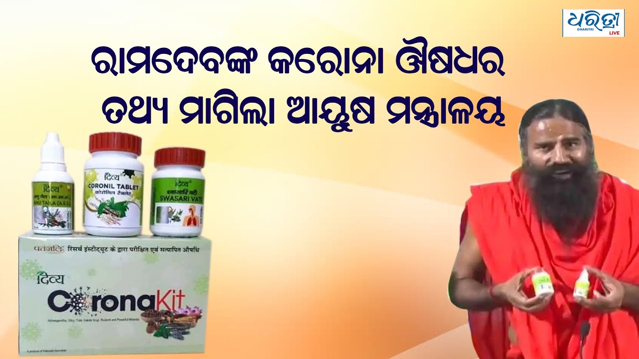 ଯୋଗଗୁରୁ ରାମଦେବ ବାବାଙ୍କ ଆୟୁର୍ବେଦ ସଂସ୍ଥା ପତଞ୍ଜଳି କରୋନା ମହାମାରୀର ଚିକିତ୍ସା ପାଇଁ ଔଷଧ ପ୍ରସ୍ତୁତ କରିଥିବା ନେଇ ଘୋଷଣା କରିଥିଲେ । ଏବେ ଏହାକୁ ନେଇ ଅଡୁଆ ବଢିବାରେ ଲାଗିଛି । କେନ୍ଦ୍ର ଆୟୁଷ ମନ୍ତ୍ରାଳୟ ପକ୍ଷରୁ ପତଞ୍ଜଳିକୁ ସବିଶେଷ ତଥ୍ୟ ମଗାଯାଇଛି । ଆୟୁଷ ମନ୍ତ୍ରାଳୟ ପକ୍ଷରୁ କୁହାଯାଇଛି ଯେ ପତଞ୍ଜଳିର କରୋନା ଔଷଧ ସମ୍ପର୍କରେ କୌଣସି ସୂଚନା ମିଳିନାହିଁ । ସରକାର ଅନୁଧ୍ୟାନ କରିବା ଯାଏ, ପତଞ୍ଜଳିକୁ କରୋନା ଔଷଧର ପ୍ରଚାର ବନ୍ଦ କରିବାକୁ କୁହାଯାଇଛ ।