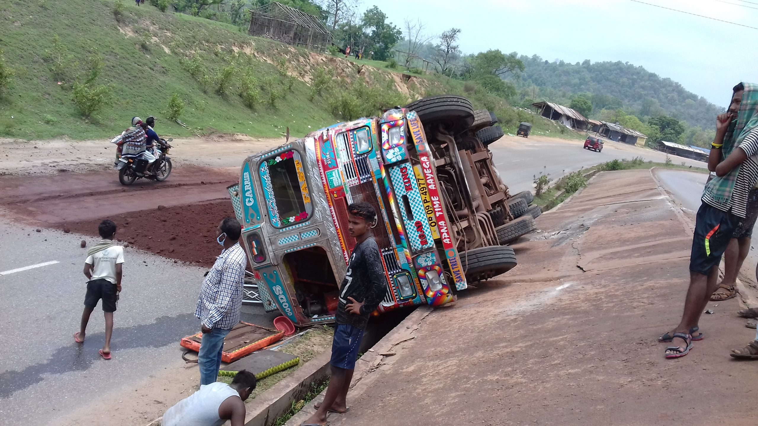 କୋଳିମାଟି,୩ା୫(ଡି.ଏନ୍.ଏ.): କେନ୍ଦୁଝର ଜିଲାର ୨୦ନଂ. ଜାତୀୟ ରାଜପଥ ଘସିପୁରା ଥାନା ଅଧୀନରେ ଥିବା କନ୍ତୋମୂଶଳ ପୋଲ ନିକଟରେ ରବିବାର ପୂର୍ବାହ୍ନରେ ଏକ ଲୁହାବୋଝେଇ ଟ୍ରକ ଓଲଟି ପଡ଼ିଛି। ସୌଭାଗ୍ୟବଶତଃ ଚାଳକଙ୍କର କୌଣସି କ୍ଷତି ହୋଇନାହିଁ। ଟ୍ରକଟି ଯୋଡ଼ାରୁ ଲୁହା ବୋଝେଇ କରି ପାରାଦୀପ ଅଭିମୁଖେ ଯାଉଥିଲା। ମୂଶଳ ନଦୀ ପାଖରେ ଓଭର ଟେକ୍ କରି ଯାଉଥିବା ସମୟରେ ଟ୍ରକ୍ଟି ଓଲଟି ପଡ଼ିଥିଲା।
