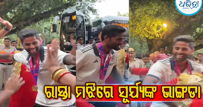 ଟିମ୍ ଇଣ୍ଡିଆକୁ ଢୋଲବାଜାରେ ସ୍ବାଗତ କରାଯାଇଥିଲା। ତେବେ ହୋଟେଲକୁ ଆସୁଥିବାବେଳେ ଯେତେବେଳେ ଟିମ ଇଣ୍ଡିଆର ତାରକା ଅଧିନାୟକ ରୋହିତ ଶର୍ମା ଏବଂ ତାରକା ଖେଳାଳି ସୂର୍ଯ୍ୟକୁମାର ଯାଦବ ଢୋଲ ବାଜୁଥିବାର ଦେଖିଲେ, ଏହାପରେ ସେମାନେ ନିଜକୁ ଅଟକାଇ ପାରି ନ ଥିଲେ। ଏବେ ସଙ୍ଗେସଙ୍ଗେ ସୂର୍ଯ୍ୟକୁମାର ଭାଙ୍ଗଡାରେ ଡ୍ୟାନ୍ସ କରିଥିଲେ। ସୂର୍ଯ୍ୟ ଏମିତି ଡ୍ୟାନ୍ସ କରିଥିଲେ ଯେ ଦିଲ୍ଲୀ ପୋଲିସ କର୍ମଚାରୀ ମଧ୍ୟ ଆଶ୍ଚର୍ଯ୍ୟ ହୋଇଯାଇଥିଲେ।