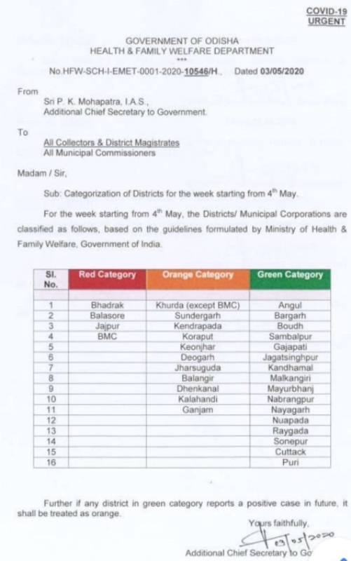 ଭୁବନେଶ୍ୱର,୩।୫: କରୋନା ସଂକ୍ରମଣ ଆଧାରରେ ଭୁବନେଶ୍ୱର ମ୍ୟୁନିସପାଲ କର୍ପୋରେଶନ(ବିଏମ୍ସି)କୁ ରେଡ୍ଜୋନ୍ରେ ସ୍ଥାନୀତ କରାଯାଇଛି। ଭାରତ ସରକାରଙ୍କ ସ୍ବାସ୍ଥ୍ୟ ଓ ପରିବାର କଲ୍ୟାଣ ପକ୍ଷରୁ ଜାରି ହୋଇଥିବା ମାର୍ଗଦର୍ଶିକା ଅନୁସାରେ ରାଜ୍ୟ ସରକାର କରୋନା ସଂକ୍ରମଣ ଅନୁସାରେ ବିଭିନ୍ନ ଜିଲାକୁ ରେଡ୍ଜୋନ୍, ଅରେଞ୍ଜଜୋନ୍ ଏବଂ ଗ୍ରୀନ୍ଜୋନ୍ ଭାବେ ବର୍ଗୀକୃତ କରିଛନ୍ତି। ରାଜ୍ୟର ରେଡ୍ଜୋନ୍ରେ ବିଏମ୍ସି ସହିତ ଭଦ୍ରକ, ବାଲେଶ୍ୱର ଏବଂ ଜୟପୁର ଜିଲାକୁ ସାମିଲ୍ କରାଯାଇଛି। ସେହିଭଳି ଅରେଞ୍ଜ୍ ଜୋନ୍ରେ ବିଏମ୍ସିକୁ ଛାଡ଼ି ଖୋର୍ଦ୍ଧାର ଅନ୍ୟ ଅଞ୍ଚଳ, ସୁନ୍ଦରଗଡ଼, କେନ୍ଦ୍ରାପଡ଼ା, କୋରାପୁଟ, କେନ୍ଦୁଝର, ଦେଓଗଡ଼, ଝାରସୁଗୁଡ଼ା, ବଲାଙ୍ଗୀର, ଢେଙ୍କାନାଳ, କଳାହାଣ୍ଡି ଏବଂ ଗଞ୍ଜାମ ଆଦି ଜିଲା ରହିଛନ୍ତି। ଅପରପକ୍ଷରେ ଗ୍ରୀନ୍ଜୋନ୍ରେ ୧୬ ଟି ଜିଲାକୁ ସ୍ଥାନୀତ କରାଯାଇଛି। ସେଥିମଧ୍ୟରେ ଅନୁଗୋଳ, ବରଗଡ଼, ବୌଦ୍ଧ, ସମ୍ବଲପୁର, ଗଜପତି, ଜଗତସିଂହପୁର, କନ୍ଧମାଳ, ମାଲକାନଗିରି, ମୟୂରଭଞ୍ଜ, ନବରଙ୍ଗପୁର, ନୟାଗଡ଼, ନୂଆପଡ଼ା, ରାୟଗଡ଼ା, ସୋନପୁର, କଟକ ଏବଂ ପୁରୀ ଜିଲା ରହିଛନ୍ତି। ମେ ୪ଠାରୁ ଏଭଳି ବର୍ଗୀକରଣ ଜାରି ରହିବ ବୋଲି କୁହାଯାଇଛି।