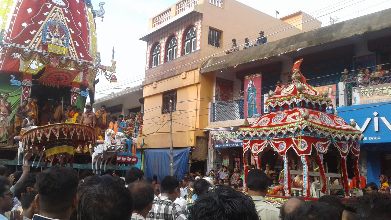 ରଣପୁର,୧୬ା୭ (ସ୍ବ.ପ୍ର.): ଦ୍ୱିତୀୟ ଶ୍ରୀକ୍ଷେତ୍ର ଭାବେ ପରିଚିତ ରଣପୁର ବାହୁଡା ଯାତ୍ରାର ୩ଦିନ ପରେ ସୋମବାର ଶ୍ରଦ୍ଧାଳୁମାନେ ନନ୍ଦିଘୋଷ ରଥ ଟାଣିଥିଲେ । ବାଟରେ ଲକ୍ଷ୍ମୀ ନାରାୟଣ ଭେଟ ପରେ ନନ୍ଦିଘୋଷ ରଥ ଜଗନ୍ନାଥ ମନ୍ଦିର ନିକଟରେ ପହଞ୍ଚାଇ ଦେଇଥିଲେ। ଶନିବାର ତାଳଧ୍ୱଜ ରଥକୁ ଭକ୍ତମାନେ ଟାଣିନେଇ ସିଂହଦ୍ୱାର ନିକଟରେ ପହଞ୍ଚାଇଥିଲେ। ଏହା ପରେ ସୁଭଦ୍ରାଙ୍କ ଦେବଦଳନ ରଥକୁ ମହିଳାମାନେ ଟାଣିଥିଲେ। ରାତ୍ର ହୋଇଯିବାରୁ ନନ୍ଦିଘୋଷ ରଥ ଟଣା ହୋଇପାରି ନ ଥିଲା ।ରବିବାର ଅପରାହ୍ନ ୨ଟାରେ ଜଗନ୍ନାଥଙ୍କ ନନ୍ଦିଘୋଷ ରଥକୁ ଭକ୍ତମାନେ ଟାଣିନେଉଥିଲା ବେଳେ ମାଉସୀ ମା’ ମନ୍ଦିରଠାରୁ ମାତ୍ର ୩ଶହ ମିଟର ଦୂରରେ ରଥର ଅଖ ଭାଙ୍ଗିଯାଇଥିଲା । ରାତିରେ ମହାରଣାମାନେ ଲାଗିପଡି ଅଖ ମରାମତି କାର୍ଯ୍ୟ ସମ୍ପୂର୍ଣ୍ଣ କରିଥିଲେ। ସୋମବାର ଅପରାହ୍ନ ସାଢେ ତିନିଟାରେ ରଥଟଣା ଆରମ୍ଭ ହୋଇଥିଲା। ଜଗନ୍ନାଥ ମନ୍ଦିର ନିକଟରେ ନନ୍ଦିଘୋଷ ରଥ ପହଞ୍ଚିବା ପରେ ଅଭିମାନିନୀ ମା’ ଲକ୍ଷ୍ମୀ ଶ୍ରୀମନ୍ଦିରରୁ ସୁସଜ୍ଜିତ ଦୋଳ ବିମାନରେ ଆସି ରଥ ନିକଟରେ ପହଞ୍ଚିଥିଲେ। ସେଠାରେ ଲକ୍ଷ୍ମୀ ନାରାୟଣ ଭେଟ କରାଯାଇଥିଲା । ରଥରେ ବିରାଜମାନ ମହାପ୍ରଭୁ ଜଗନ୍ନାଥଙ୍କ ସହିତ ମା’ଲକ୍ଷ୍ମୀଙ୍କ ଏହି ଭେଟକୁ ଦେଖି ଉପସ୍ଥିତ ଭକ୍ତମାନେ ବିମୋହିତ ହୋଇପଡିଥିଲେ। ସ୍ଥାନୀୟ ପ୍ରଶାସନ ଓ ପୋଲିସ ସହଯୋଗରେ ଶୃଙ୍ଖଳାର ସହ ସମସ୍ତ କାର୍ଯ୍ୟ ସମାପନ ହୋଇଥିଲା।