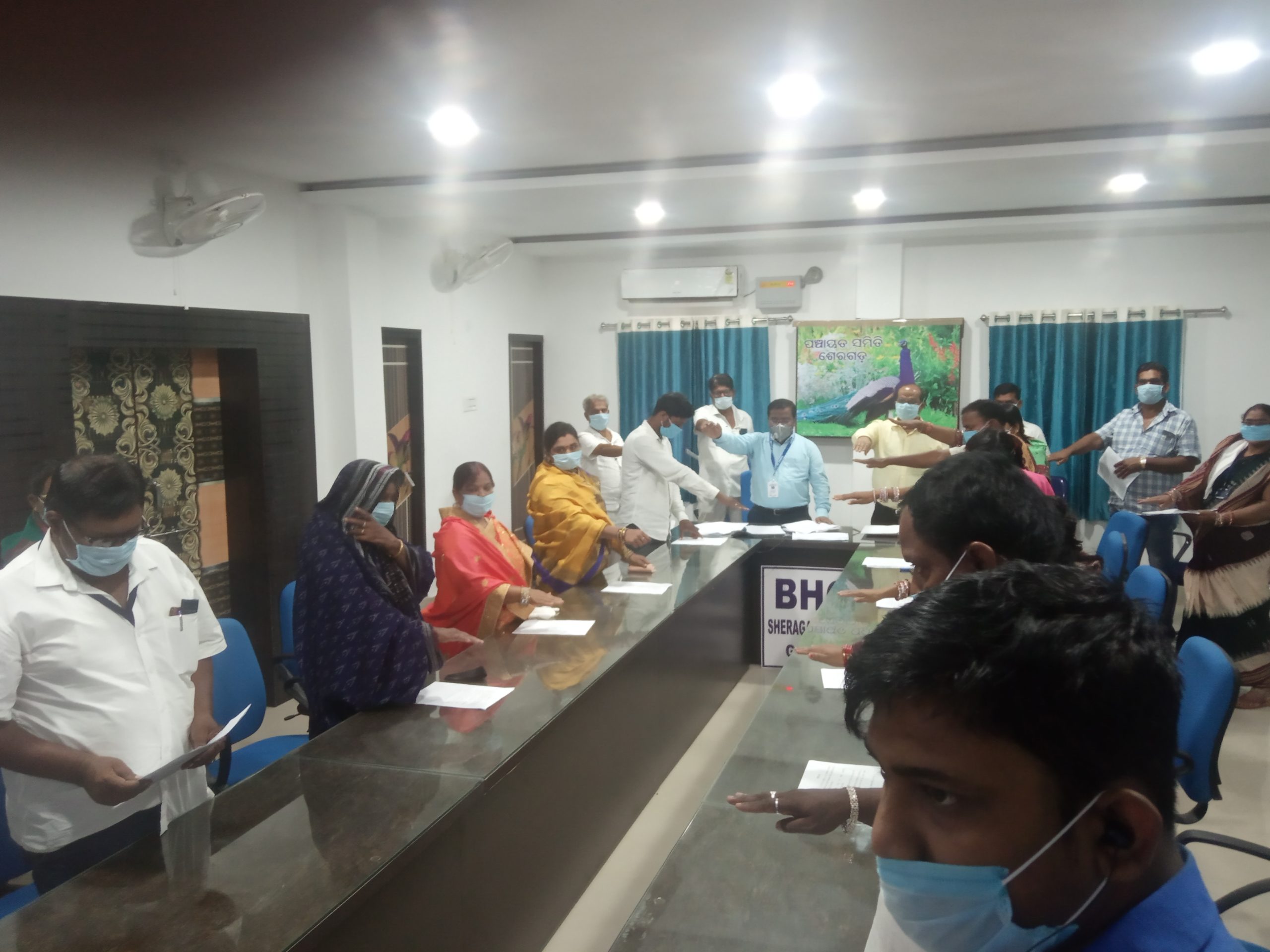 ଶେରଗଡ଼, ୨୨।୪(ଡି.ଏନ୍.ଏ.): ଗଞ୍ଜାମ ଜିଲା ଶେରଗଡ଼ ବ୍ଲକରେ ଥିବା ଭିଡିଓ କନଫେରନ୍ସି ହଲ୍ରେ ଶେରଗଡ଼ ବ୍ଲକର ସମସ୍ତ ସରପଞ୍ଚମାନେ ଏକ ଶପଥ ନେଇଛନ୍ତି। ସରପଞ୍ଚ ଭାବେ ନିଜେ ପଞ୍ଚାୟତକୁ ଫେରିଥିବା ଶ୍ରମିକମାନଙ୍କୁ ନେଇ ଗ୍ରାମ ପଞ୍ଚାୟତଗୁଡ଼ିକରେ ଖୋଲାଯାଇଥିବା କ୍ୱାରାଣ୍ଟାଇନ୍ ଗୃହରେ ରଖିବୁ । ସେମାନଙ୍କ ରହିବା, ଖାଇବା ବ୍ୟବସ୍ଥା କରିବୁ। ସେମାନଙ୍କ ଉଚିତ ବ୍ୟବସ୍ଥା କରିବାରେ ସହଯୋଗ କରିବୁ। ଆଜିଠାରୁ ମୋ ପଞ୍ଚାୟତରେ କେହି ଆସି ପହଁଚିଲେ ମୁଁ ସେମାନଙ୍କ ପଞ୍ଜିକରଣ କରାଇ କ୍ୱାରାଣ୍ଟାଇନ୍ରେ ରଖିବାର ସହଯୋଗ କରିବୁ ବୋଲି ସରପଞ୍ଚମାନେ ଶପଥ କରିଛନ୍ତି। ତେବେ ମୁଖ୍ୟମନ୍ତ୍ରୀ ନବୀନ ପଟ୍ଟନାୟକ, ମୁଖ୍ୟ ଶାସନ ସଚିବ ଅସିତ ତ୍ରିପାଠୀ ଏହି ଶପଥ ପାଠ କରାଇଥିଲେ। ଉକ୍ତ ସମୟରେ ଭିଡିଓ କନ୍ଫରେନ୍ସିଂ ଜରିଆରେ ପଞ୍ଚାୟତର ସରପଞ୍ଚମାନେ ଜିଲାପାଳ କ୍ଷମତା ସହ କୋଭିଡ ୧୯ ମୁକାବିଲା କରିବାର ସମ୍ପୂର୍ଣ୍ଣ ସହଯୋଗ କରିବେ ବୋଲି ଭିଡିଓ କନଫେରନ୍ସି କୁହାଯାଇଥିଲା। ଉକ୍ତ ଶପଥ ପାଠ ଉତ୍ସବରେ ବିଡିଓ ସୁରଞ୍ଜନ କୁମାର ସାହୁ, ତହସିଲଦାର ଡ.ଦୟାସିନ୍ଧୁ ପରିଡ଼ା ସମେତ ସମସ୍ତ ସରପଞ୍ଚ ମାନେ ଉପସ୍ଥିତ ଥିଲେ।