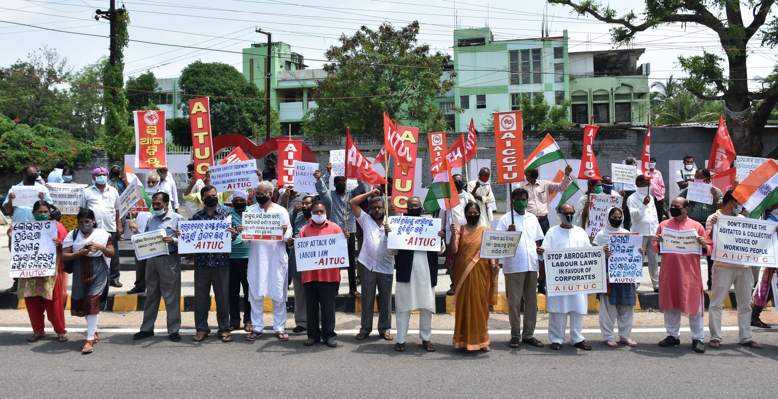 କେନ୍ଦ୍ର ତଥା ରାଜ୍ୟ ସରକାରଙ୍କ ଶ୍ରମିକ ମାରଣ ନୀତି ପାଇଁ ସାରା ଦେଶରେ ବିଭିନ୍ନ ଶ୍ରମିକ ସଙ୍ଗଠନ ପକ୍ଷରୁ ଶୁକ୍ରବାର ପ୍ରତିବାଦ ଦିବସ ପାଳନ ଅବସରରେ ଭୁବନେଶ୍ୱରରେ ଏଆଇୟୁଟିୟୁସି ପକ୍ଷରୁ ଏକ ପ୍ରତିବାଦ ସଭା କରାଯାଇଥିଲା। ଶ୍ରମିକ ନେତା ଜନାର୍ଦ୍ଦନ ପତିଙ୍କ ନେତୃତ୍ୱରେ ଏଆଇୟୁଟିୟୁସିର ବହୁ କର୍ମକର୍ତ୍ତା ମାଷ୍ଟରକ୍ୟାଣ୍ଟିନ୍ ଛକରେ ଉପସ୍ଥିତ ହୋଇ କେନ୍ଦ୍ର ତଥା ରାଜ୍ୟ ସରକାର ଶ୍ରମିକମାରଣ ନୀତି ବନ୍ଦ କରନ୍ତୁ ବୋଲି ଦାବି କରିବା ସହ ଶ୍ରମ ଆଇନ ସଂଶୋଧନ କରି ପୁନର୍ବାର ଶ୍ରମିକମାନେ ଦୈନିକ ୮ଘଣ୍ଟା ପରିଶ୍ରମ କରନ୍ତୁ ବୋଲି ଦାବି କରିଛନ୍ତି। ଆୟୋଜିତ ଏହି ପ୍ରତିବାଦ ସଭାରେ ଏଆଇୟୁଟିୟୁସି ପକ୍ଷରୁ ପୂର୍ଣ୍ଣଚନ୍ଦ୍ର ବେହେରା, ନିରଞ୍ଜନ ମହାନ୍ତି, ବିଜ୍ଞାନ ବେହେରା, ସନ୍ତୋଷ ଦିଗଲ, ବିଜୟ ଜେନା ପ୍ରମୁଖ ଉପସ୍ଥିତ ରହି ପ୍ରତିବାଦ କରିଥିବା ଜଣାପଡ଼ିଛି।