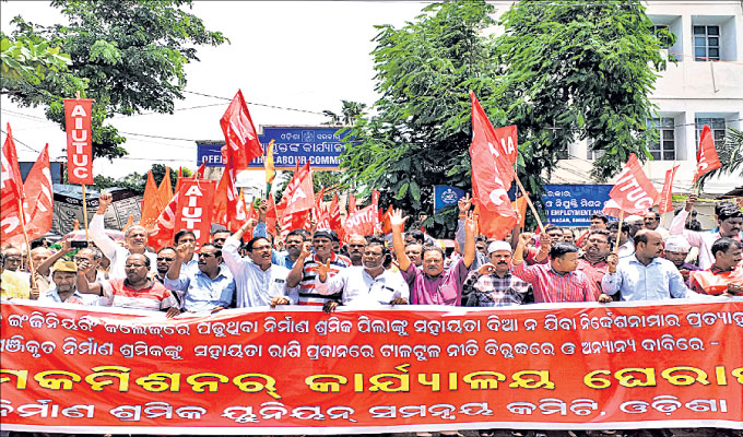ଭୁବନେଶ୍ୱର, ୨୦ା୭(ବ୍ୟୁରୋ): ନିର୍ମାଣ ଶ୍ରମିକଙ୍କ ପାଇଁ ଉଦ୍ଦିଷ୍ଟ ସହାୟତା କଲ୍ୟାଣ ବୋର୍ଡର ପ୍ରତ୍ୟାହାର ନିଷ୍ପତ୍ତି ବିରୋଧରେ ଶୁକ୍ରବାର ଶ୍ରମ କମିଶନରଙ୍କ କାର୍ଯ୍ୟାଳୟ ଘେରାଉ ହୋଇଛି। ନିର୍ମାଣ ଶ୍ରମିକମାନଙ୍କ ପିଲାଙ୍କ ଶିକ୍ଷା ଲାଗି ପ୍ରଚଳିତ ସହାୟତା ରାଶି କେବଳ ସରକାରୀ ଶିକ୍ଷାନୁଷ୍ଠାନରେ ଅଧ୍ୟୟନ କରୁଥିଲେ ଦିଆଯିବ ବୋଲି ହୋଇଥିବା ନୂତନ ନିର୍ଦ୍ଦେଶ ବିରୋଧରେ ଶତାଧିକ ଶ୍ରମିକ ଓଡ଼ିଶା ଶ୍ରମ କମିଶନରଙ୍କ କାର୍ଯ୍ୟାଳୟ ସମ୍ମୁଖରେ ବିକ୍ଷୋଭ ପ୍ରଦର୍ଶନ କରିଛନ୍ତି। ନିର୍ମାଣ ଶ୍ରମିକ ୟୁନିୟନ୍ ସମନ୍ବୟ କମିଟି ଓଡ଼ିଶା ଆହ୍ବାନରେ ଆୟୋଜିତ ଏହି ସମାବେଶରେ ଏଆଇଟିୟୁସି ରାଜ୍ୟ ଉପସାଧାରଣ ସମ୍ପାଦକ ବିଜୟ ଜେନା, ସୁର ଜେନା, ଜୟନ୍ତ ଦାସ, ପ୍ରଣତୀ ମିଶ୍ର, କିଶୋର ଜେନା, ବିପ୍ଳବ କେଶରୀ ମହାପାତ୍ର, ଶଙ୍କର୍ଷଣ ବେହେରା, ମନୋରଞ୍ଜନ ମହାରଣା, ମହାବୀର ମିଶ୍ର, ମହେନ୍ଦ୍ର ପରିଡ଼ା, ବସନ୍ତ ସାହୁ, ବିଦ୍ୟାଧର ମହାନ୍ତି, ସୋମନାଥ ଗିରି, କରୁଣା ଦାସ ଏହି ବିକ୍ଷୋଭର ନେତୃତ୍ୱ ନେଇଥିଲେ। ବିଭିନ୍ନ ଶ୍ରମିକ ସଂଗଠନ ଯଥା ଏଆଇଟିୟୁସି, ଏଚ୍ଏମ୍ଏସ୍, ଆଇଏନ୍ଟିୟୁସି, ବିଏମ୍ଏସ୍, ଏଆଇସିସିଟିୟୁ ସମେତ ୫୦ରୁ ଅଧିକ ଶ୍ରମିକ ସଂଗଠନ ଓ ୟୁନିୟନମାନେ ଅଂଶଗ୍ରହଣ କରିଥିଲେ। ଏକ ମିଳିତ ନିର୍ମାଣ ଶ୍ରମିକ ଶୋଭାଯାତ୍ରାରେ ସହର ପରିକ୍ରମା କରି ଶ୍ରମ କମିଶନର କାର୍ଯ୍ୟାଳୟଠାରେ ପହଞ୍ଚତ୍ଥିଲେ। ବିକ୍ଷୋଭ ପରେ ପ୍ରତିନିଧି ମଣ୍ଡଳୀ ରାଜ୍ୟ ଶ୍ରମ କମିଶନର ନାରାୟଣ ଚନ୍ଦ୍ର ସାହୁଙ୍କୁ ସାକ୍ଷାତ କରି ୯ ଦଫା ସମ୍ବଳିତ ଦାବିପତ୍ର ଉପସ୍ଥାପନ କରିଥିଲେ। ଦାବିଗୁଡ଼ିକର ଯଥାର୍ଥକୁ ଶ୍ରମ କମିଶନର ସ୍ବୀକାର କରିବା ସହ ଛାତ୍ରୀଛାତ୍ରଙ୍କ ଶିକ୍ଷାବୃତ୍ତିରୁ କୌଣସି ନିର୍ମାଣ ଶ୍ରମିକ ହିତାଧିକାରୀ ଯେଭଳି ବଞ୍ଚିତ ନ ହେବେ ସେଥିପାଇଁ ବ୍ୟବସ୍ଥା କରିବ ବୋଲି ପ୍ରତିଶ୍ରୁତି ଦେବାପରେ ବିକ୍ଷୋଭରୁ ଓହରିଥିଲେ।