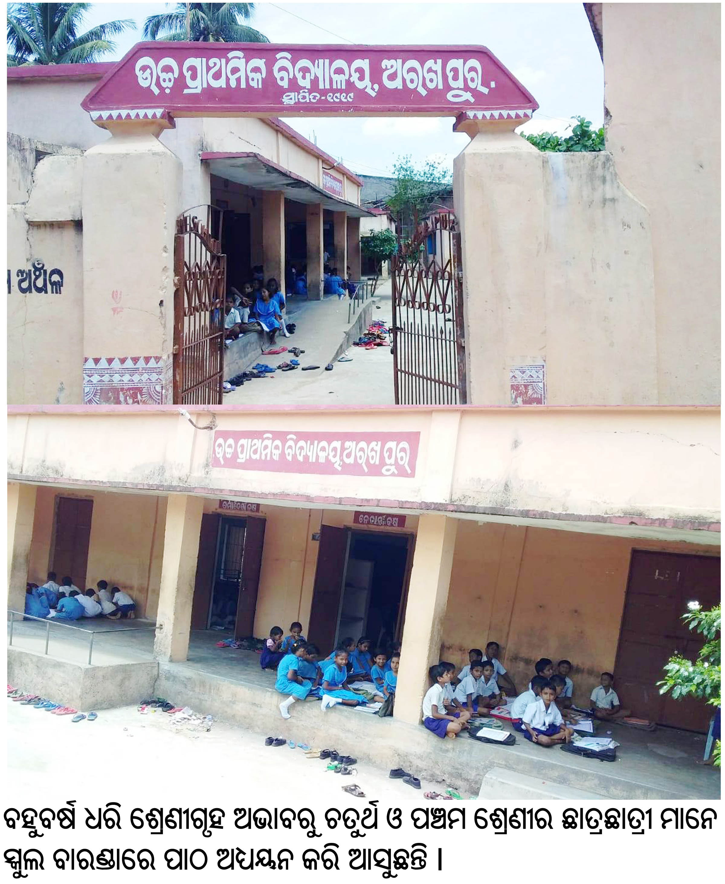ହାତୀଓଟ,୨୭ା୬-କେନ୍ଦ୍ର ଓ ରାଜ୍ୟ ସରକାର ସରକାରୀ ସ୍କୁଲ ଗୁଡିକରେ କିପରି ଛାତ୍ରୀଛାତ୍ରଙ୍କ ଉପସ୍ଥାନ ଅଧିକ ହେବ ସେ ନେଇ ବିଭିନ୍ନ ଯୋଜନା କରିଛନ୍ତି । ଗଁ। ଗହଳିର ଛାତ୍ରୀଛାତ୍ରମାନେ ପାଠପଢା ପ୍ରତି ଆଗ୍ରହ ପ୍ରକାଶ କରି ଅଧିକରୁ ଅଧିକ ଯେପରି ଆକୃଷ୍ଟ ହେବେ ସେଥିପାଇଁ ସର୍ବଶିକ୍ଷା ଅଭିଯାନଠାରୁ ଆରମ୍ଭ କରି ମୋ ସ୍କୁଲ୍ ଶ୍ରେଷ୍ଠ ସ୍କୁଲ୍, ବେଟି ପଢାଓ ବେଟି ବଚାଓ ଯୋଜନାମାନ ପ୍ରଣୟନ କରିଛନ୍ତି। କିନ୍ତୁ ଶିକ୍ଷା ବିଭାଗର ଦାୟିତ୍ୱହୀନତା ଓ ଆଗ୍ରହ ନ ଥିବା ଭଳି ଦେଖିବାକୁ ମିଳିଛି। ଗଞ୍ଜାମ ଜିଲା ପୋଲସରା ବ୍ଲକ ମନ୍ଦାର ନିକଟସ୍ଥ ଅରଖପୁର ଗ୍ରାମ ଉଚ୍ଚ ପ୍ରାଥମିକ ବିଦ୍ୟାଳୟରେ ଦେଖିବାକୁ ମିଳିଛି। ଏହି ବିଦ୍ୟାଳୟ ୧୯୧୯ ରେ ଅରଖପୁର ଗ୍ରାମ ବନ୍ଧ ନିକଟରେ ସ୍ଥାପିତ ହୋଇଛି। ସ୍କୁଲ ଆରମ୍ଭଠାରୁ ୨୦୧୨ ମସିହା ପର୍ଯ୍ୟନ୍ତ ଏହି ଉଚ୍ଚ ପ୍ରାଥମିକ ବିଦ୍ୟାଳୟଟି ପ୍ରଥମ ଠାରୁ ପଞ୍ଚମ ଶ୍ରେଣୀ ପର୍ଯ୍ୟନ୍ତ ରହିଛି ା ବର୍ତ୍ତମାନ ତାହା ଉନ୍ନୀତ ବିଦ୍ୟାଳୟ ହୋଇ ପ୍ରଥମ ଶ୍ରେଣୀଠାରୁ ଅଷ୍ଟମ ଶ୍ରେଣୀ ପର୍ଯ୍ୟନ୍ତ ହୋଇଛି। ଏହି ସ୍କୁଲରେ ବର୍ତ୍ତମାନ ୨୨୫ଜଣ ଛାତ୍ରୀଛାତ୍ର ପାଠ ପଢ଼ୁଥିବା ବେଳେ ୮ଜଣ ଶିକ୍ଷକ ରହିଛନ୍ତିି। ବର୍ତ୍ତମାନ ପ୍ରଧାନଶିକ୍ଷକଙ୍କ କାର୍ଯ୍ୟାଳୟ ଓ ଲାଇବ୍ରେରି ନ ଥିବା ବେଳେ ବହୁବର୍ଷ ଧରି ଏହି ଶ୍ରେଣୀଗୃହ ଅଭାବ ଲାଗି ରହିଛି। ଶୀତ, ବର୍ଷା ଓ ଖରାରେ ବର୍ଷ ବର୍ଷ ଧରି ଛାତ୍ରୀଛାତ୍ରମାନେ ସ୍କୁଲ ବାରଣ୍ଡାରେ ବସି ପାଠ