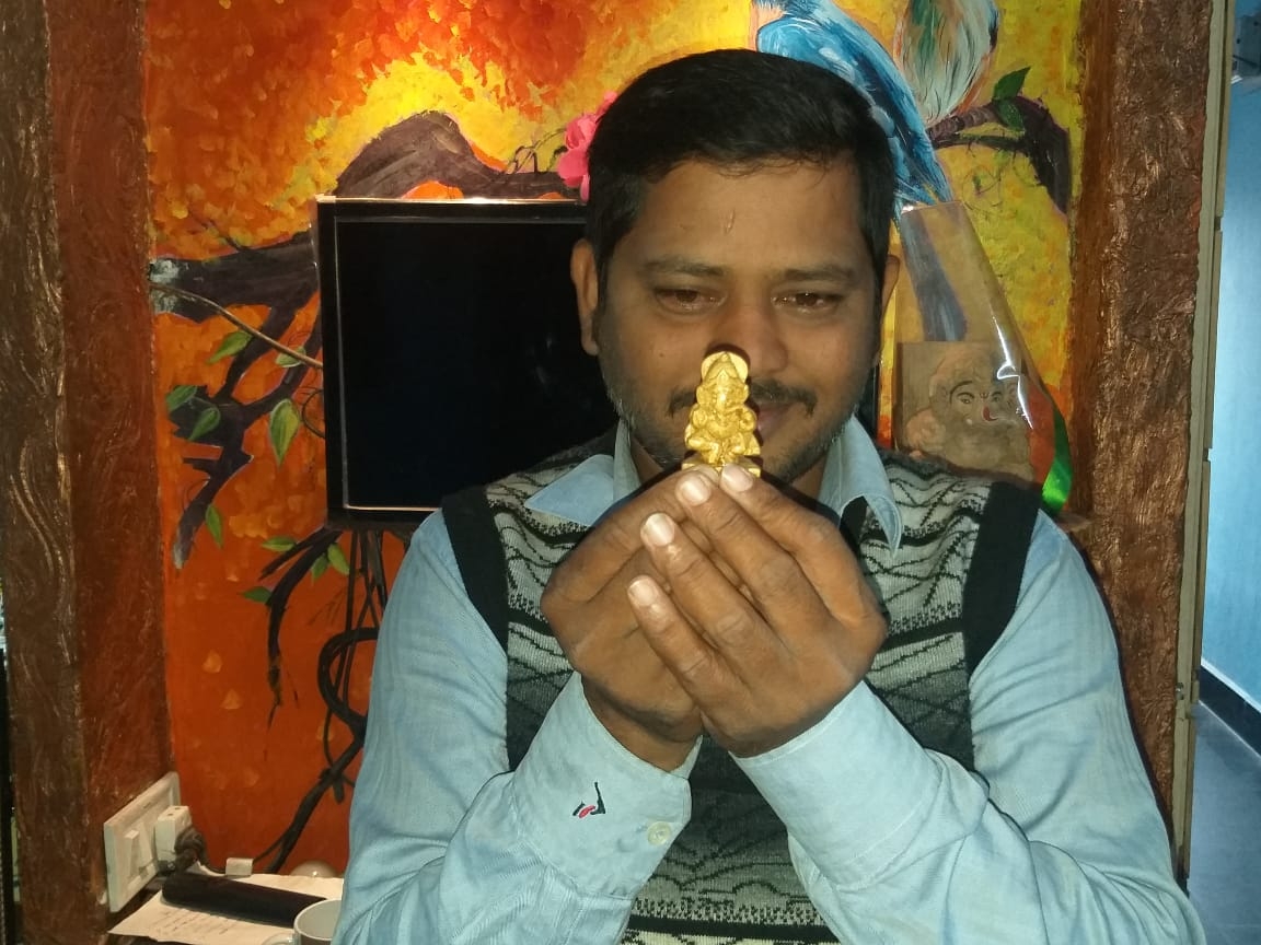 ବ୍ରହ୍ମପୁର ଅଫିସ,୧୪ା୧୨-ନିଆରା କଳାକୃତି କରି ରେକର୍ଡ କରିବାର ନିଶା ତାଙ୍କୁ ସାରା ବିଶ୍ୱରେ ସ୍ବତନ୍ତ୍ର ପରିଚୟ ପ୍ରଦାନ କରିଛି | ପୂର୍ବରୁ ବହୁବାର ଚକ, କାଠ, ସାବୁନରେ ନିଆରା କ୍ଷୁଦ୍ର କଳାକୃତି କରି ବିଶ୍ୱସ୍ତରରେ ରେକର୍ଡ ସୃଷ୍ଟି କରିଥିବା ବେଳେ ଏବେ କାଠରେ ବିଶ୍ୱର ସବୁଠାରୁ କ୍ଷୁଦ୍ର ଗଣେଶ ନିର୍ମାଣ କରି ପୁଣି ଚର୍ଚ୍ଚାକୁ ଆସିଛନ୍ତି | ସେ ହେଲେ ଗଞ୍ଜାମ ଜିଲା ସୋରଡାରେ ଜନ୍ମିତ ତଥା ବ୍ରହ୍ମପୁରର ଶିଳ୍ପୀ ସତ୍ୟ ମହାରଣା | କାଠରେ ବିଶ୍ୱର ସବୁଠୁ କ୍ଷୁଦ୍ର ଗଣେଶ କରି ସେ ଏକା ସମୟରେ ଦୁଇଟି ରେକର୍ଡରେ ନିଜ ନାମ ସ୍ଥାନିତ କରିଛନ୍ତି। ଗମ୍ଭାରୀ କାଠରେ ୧.୯ ଇଞ୍ଚ ଉଚ୍ଚତା ଓ ୧ ଇଞ୍ଚ ଓସାରର ନିର୍ମିତ ଏହି କ୍ଷୁଦ୍ର କାଠ ଗଣେଶ ମୂର୍ତ୍ତିଟି ଏକା ସମୟରେ ୟୁନିଭର୍ସାଲ ବୁକ ଅଫ ରେକର୍ଡ ଓ କାଲାମ ବୁକ ଅଫ ରେକର୍ଡରେ ସ୍ଥାନୀତ ହୋଇଛି ା