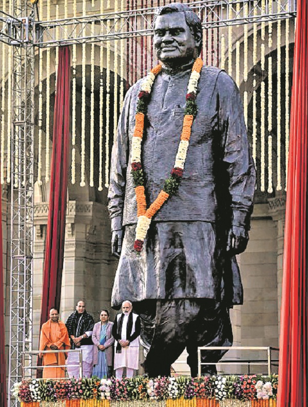 ବାଜପେୟୀଙ୍କ ୯୫ତମ ଜନ୍ମଦିବସ ଅବସରରେ ପ୍ରଧାନମନ୍ତ୍ରୀ ଭୂତଳ ଜଳ ସ୍ତର ବୃଦ୍ଧି ଲାଗି ଅଟଳ ଭୂଜଳ ଯୋଜନାର ଶୁଭାରମ୍ଭ କରିଛନ୍ତି। ଏହି ଯୋଜନା ମହାରାଷ୍ଟ୍ର, ହରିୟାଣା, ରାଜସ୍ଥାନ, ଗୁଜରାଟ, ମଧ୍ୟପ୍ରଦେଶ, ଉତ୍ତରପ୍ରଦେଶ ଓ କର୍ନାଟକର ୭୮ଟି ଜିଲାର ୮୩୦୦ରୁ ଊର୍ଦ୍ଧ୍ୱ ଗ୍ରାମରେ ଭୂତଳ ଜଳସ୍ତର ବଢ଼ାଇବାରେ ସହାୟକ ହେବ ବୋଲି ପ୍ରଧାନମନ୍ତ୍ରୀ କହିଛନ୍ତି। କମ୍ ପାଣି ଦରକାର ହେଉଥିବା କୃଷି ଉପରେ ଗୁରୁତ୍ୱ ଦେବାକୁ ସେ ପରାମର୍ଶ ଦେଇଛନ୍ତି। ଏହି ଅବସରରେ ସରକାର ହିମାଚଳପ୍ରଦେଶର ରୋହତାଙ୍ଗ ଗିରିପଥକୁ ବାଜପେୟୀଙ୍କ ନାମରେ ନାମିତ କରିଛନ୍ତି। ଏଥିପାଇଁ ଦୀର୍ଘଦିନରୁ ଦାବି ହେଉଥିଲା ବୋଲି ପ୍ରତିରକ୍ଷା ମନ୍ତ୍ରୀ ରାଜନାଥ ସିଂ କହିଛନ୍ତି। ୪୦୦୦ କୋଟି ଟଙ୍କାରେ ନିର୍ମିତ ଏହି ସୁଡ଼ଙ୍ଗ କାର୍ଯ୍ୟ ୨୦୨୦ରେ ଶେଷ ହେବ। ୨୦୦୦ରେ ବାଜପେୟୀ ପ୍ରଧାନମନ୍ତ୍ରୀ ଥିବାବେଳେ ଏହି ଗିରିପଥ ନିର୍ମାଣ ପାଇଁ ନିଷ୍ପତ୍ତି ହୋଇଥିଲା। ସମୁଦ୍ରପତ୍ତନଠାରୁ ୩୦୦୦ ମିଟର ଉଚ୍ଚରେ ଏହି ୮.୮ କିମି ସୁଡଙ୍ଗ ବିଶ୍ୱର ଦୀର୍ଘତମ। ଏହା କାର୍ଯ୍ୟକାରୀ ହେଲେ ମନାଲି ଓ ଲେହ ମଧ୍ୟରେ ଦୂରତା ୪୬ କିଲୋମିଟର ହ୍ରାସ ପାଇବ ବୋଲି ପ୍ରତିରକ୍ଷା ମନ୍ତ୍ରଣାଳୟ ପକ୍ଷରୁ କୁହାଯାଇଛି।