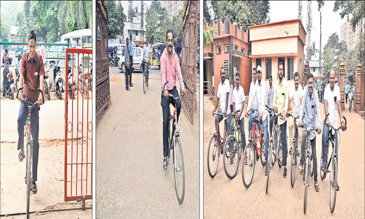 ଭୁବନେଶ୍ୱର, ୧୪ା୧୨ (ବ୍ୟୁରୋ): ସହରାଞ୍ଚଳ ପରିବେଶକୁ ଯାନବାହନ ପ୍ରଦୂଷଣରୁ ମୁକ୍ତ ରଖିବାକୁ ଭୁବନେଶ୍ୱର ଉନ୍ନୟନ କର୍ତ୍ତୃପକ୍ଷ (ବିଡିଏ), ଭୁବନେଶ୍ୱର ମହାନଗର ନିଗମ(ବିଏମସି) ଏବଂ ଭୁବନେଶ୍ୱର ସ୍ମାର୍ଟସିଟି ଲିମିଟେଡ (ବିଏସ୍ସିଏଲ୍) ପକ୍ଷରୁ ଏକ ଭଲ ପଦକ୍ଷେପ ଗ୍ରହଣ କରାଯାଇଛି। ଏହି ୩ ସଂସ୍ଥାର ଅଧିକାରୀ ଓ କର୍ମଚାରୀମାନେ ପ୍ରତି ଶୁକ୍ରବାର ନିଜ ମୋଟରସାଇକେଲ କିମ୍ବା ୪ ଚକିଆ ଯାନବାହନ ଧରି ନ ଆସିବାକୁ ସମ୍ପୃକ୍ତ କାର୍ଯ୍ୟାଳୟଗୁଡ଼ିକ ପକ୍ଷରୁ ବିଜ୍ଞପ୍ତି ପ୍ରକାଶ କରାଯାଇଥିଲା। ସେହି ଅନୁଯାୟୀ ଶୁକ୍ରବାର ସକାଳ ୧୦ଟା ୩୦ ମିନିଟରେ ବିଡିଏ ଉପାଧ୍ୟକ୍ଷ, ବିଏମସି କମିଶନର ତଥା ବିଏସ୍ସିଏଲ୍ ମୁଖ୍ୟ କାର୍ଯ୍ୟନିର୍ବାହୀ ଅଧିକାରୀ ପ୍ରେମଚନ୍ଦ୍ର ଚୌଧୁରୀ ସାଇକେଲ ଯୋଗେ ବିଏମସି କାର୍ଯ୍ୟାଳୟକୁ ଯାଇଥିଲେ। କାର୍ଯ୍ୟାଳୟର କର୍ମଚାରୀମାନେ ମଧ୍ୟ ଗାଡି ଆଣି ନ ଥିବା ଦେଖିବାକୁ ମିଳିଥିଲା। ସେମାନଙ୍କ ମଧ୍ୟରୁ କେତେଜଣ ସାଇକେଲରେ ଆସିଥିବା ବେଳେ ଅନ୍ୟ କେତେ ଜଣ ମୋ ବସରେ ଆସିଥିବା ଦେଖା ଯାଇଥିଲା।