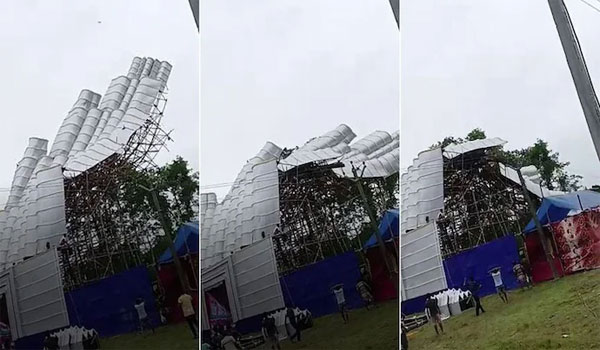 କୋଲକାତା,୨୪।୧୦: ପଶ୍ଚିମବଙ୍ଗର କୋଚ ବେହାରଠାରେ କାଳୀ ପୂଜା ପାଇଁ ସ୍ଥାପିତ ହୋଇଥିବା ପୂଜା ତୋରଣ ପ୍ରବଳ ପବନ ଯୋଗୁଁ ଭୁଶୁଡି ପଡିଛି। ସମ୍ଭାବ୍ୟ ବାତ୍ୟା ସିତ୍ରାଙ୍ଗ ପ୍ରଭାବରେ ସୋମବାର ସକାଳୁ କୋଚ ବେହାରରେ ହାଲୁକା ବର୍ଷା ହୋଇଥିବା ସୂଚନା ମିଳିଛି। ଏହାପରେ ଅପରାହ୍ନରେ ପ୍ରବଳ ପବନ ହୋଇଥିଲା। ଯାହା ଫଳରେ ପୂଜା ତୋରଣଭୁଶୁଡି ପଡିଥିଲା। ଭାରତୀୟ ପାଣିପାଗ ବିଭାଗ ଅନୁଯାୟୀ, ସିତ୍ରାଙ୍ଗ ଗୋଟିଏ ଭୀଷଣ ବାତ୍ୟାର ରୂପ ନେବାର ସମ୍ଭାବନା ରହିଛି। ଫଳରେ ପଶ୍ଚିମବଙ୍ଗରେ ପ୍ରବଳ ବର୍ଷା ହୋଇପାରେ। ଏନେଇ ଆଇଏମଡି ପକ୍ଷରୁ ସତର୍କ ସୂଚନା ଜାରି କରାଯାଇଛି।ଏହାସହ ଦକ୍ଷିଣ ବେଙ୍ଗଲ ଜିଲାର ଏକାଧିକ ଅଞ୍ଚଳରେ ଆସନ୍ତା କିଛି ଦିନ ମଧ୍ୟରେ ବଜ୍ରପାତ ସହିତ ହାଲୁକାରୁ ମଧ୍ୟମ ବର୍ଷା ହେବାର ସମ୍ଭାବନା ରହିଥିବା ସୂଚନା ମିଳିଛି।
