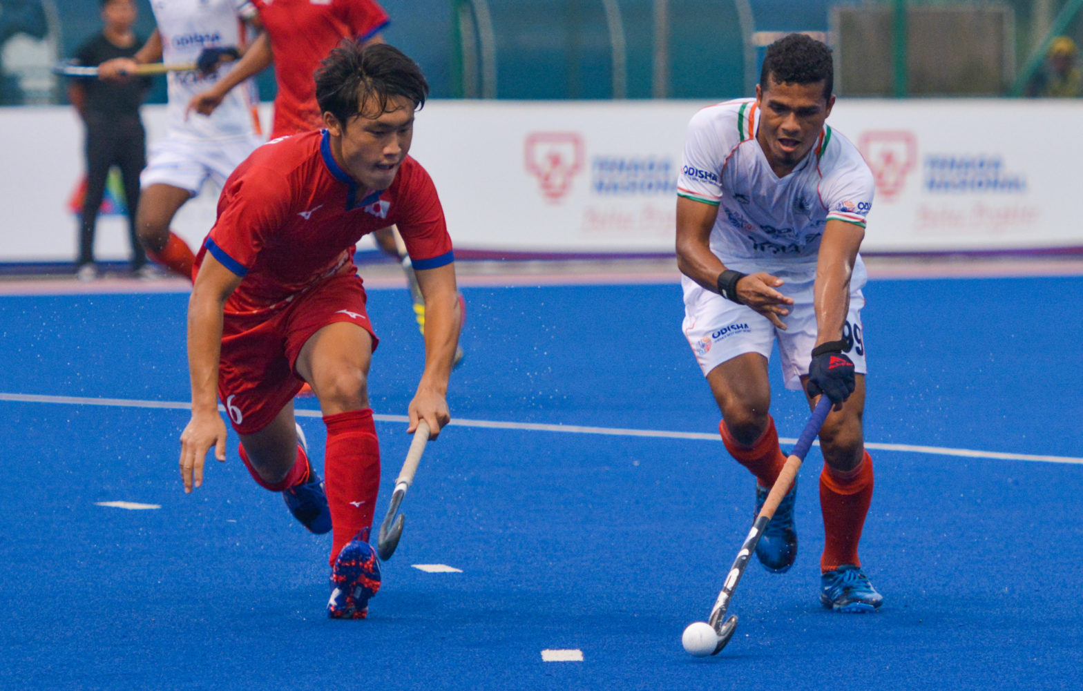 ଆରମ୍ଭରୁ ଆକ୍ରମଣାତ୍ମକ ଖେଳିଥିବା ଜାପାନକୁ ପ୍ରଥମ ମିନିଟରେ ହିଁ ଫାଇଦା ମିଳିଥିଲା। ମିଳିଥିବା ପେନାଲ୍ଟି କର୍ନରକୁ ଓ୍ବାତାରୁ ମାତ୍ସୁମୋତୋ ଡ୍ରାଗ୍ଫ୍ଲିକ୍ ଜରିଆରେ ଗୋଲରେ ପରିଣତ କରି ଦଳକୁ ଅଗ୍ରଣୀ କରାଇଥିଲେ। ଜବାବରେ ଭାରତ ମଧ୍ୟ ଆକ୍ରମଣାତ୍ମକ ପନ୍ଥା ଅବଲମ୍ବନ କରି ୩ୟ ମିନିଟରେ ଏକ ପେନାଲ୍ଟି କର୍ନର ସୁଯୋଗ ସୃଷ୍ଟି କରିଥିଲା। ମାତ୍ର ପ୍ରତାପ ଲାକ୍ରାଙ୍କ ଶଟ୍କୁ ପ୍ରତିପକ୍ଷ ଦଳର ତାକୁମି କିଟାଗାଓ୍ବା ଅଟକାଇବାରେ ସକ୍ଷମ ହୋଇଥିଲେ। ପ୍ରଥମ କ୍ୱାର୍ଟରରେ ଭାରତ ଏକାଧିକ ସୁଯୋଗ ସୃଷ୍ଟି କରିଥିଲେ ହେଁ ଫିନିଶ୍ ଟଚ୍ ଦେବାରେ ବିଫଳ ହେବାରୁ ଗୋଲଟି ପରିଶୋଧ କରିପାରି ନ ଥିଲା। ଦ୍ୱିତୀୟ କ୍ୱାର୍ଟରରେ ମଧ୍ୟ ଭାରତୀୟ ଦଳର ପ୍ରଦର୍ଶନ ଆଶାନୁରୂପ ହୋଇ ନ ଥିଲା। ଦଳ ଗୋଲ ପରିଶୋଧ ଉଦ୍ୟମରେ ବିଫଳ ହୋଇଥିବାବେଳେ ଜାପାନର କୋସେଇ କାଓ୍ବାବେ ୨୨ତମ ମିନିଟରେ ପେନାଲ୍ଟି କର୍ନରକୁ ଗୋଲରେ ପରିଣତ କରି ପ୍ରଥମାର୍ଦ୍ଧ ଶେଷସୁଦ୍ଧା ଦଳକୁ ୨-୦ ଗୋଲରେ ଅଗ୍ରଣୀ କରାଇଥିଲେ।