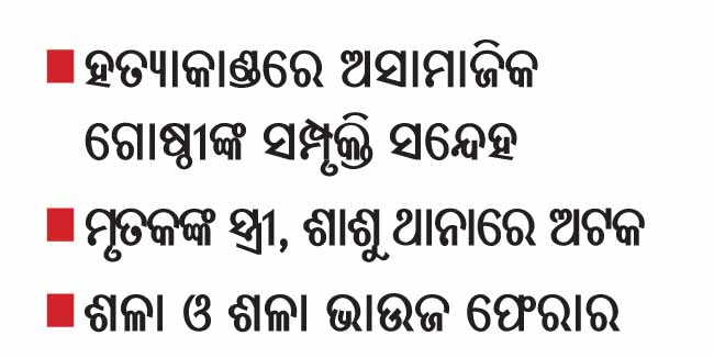 କୋରେଇ,୮।୭(ସ୍ବ.ପ୍ର.): ଯାଜପୁର ଜିଲା ଏସ୍ପି ଅଫିସ୍ଠାରୁ ମାତ୍ର ୨୦୦ ମିଟର ଦୂର ପାଣିକୋଇଲି ବଜାରରେ ଥିବା ଏକ ହୋଟେଲରୁ ପୋଲିସ ରବିବାର ସକାଳେ ରକ୍ତ ଜୁଡୁବୁଡ଼ୁ ଅବସ୍ଥାରେ ହୋଟେଲ ମାଲିକଙ୍କ ମୃତଦେହ ଉଦ୍ଧାର କରିଛି। ମୃତକ ହେଲେ ସ୍ଥାନୀୟ ପାଣିକୋଇଲି ଗ୍ରାମର ରବୀନ୍ଦ୍ର ସାହୁ। ଶନିବାର ବିଳମ୍ବିତ ରାତିରେ କେହି ରବୀନ୍ଦ୍ରଙ୍କ ଗଳାକାଟି ହତ୍ୟା କରିଥିବା ଅନୁମାନ କରାଯାଉଛି। ରବୀନ୍ଦ୍ରଙ୍କ ଭାଇ ଗୋବିନ୍ଦ ଥାନାରେ ଖବର ଦେବା ପରେ ପାଣିକୋଇଲି ଥାନାଧିକାରୀ ଓ ଯାଜପୁରରୋଡ ଏସ୍ଡିପିଓ କେଦାରନାଥ ସାହୁ ଘଟଣାସ୍ଥଳରେ ପହଞ୍ଚି ତଦନ୍ତ ଆରମ୍ଭ କରିଛନ୍ତି। ଅଭିଯୋଗକୁ ଭିତ୍ତିକରି ପୋଲିସ ଏକ ମାମଲା (ନଂ.୧୨୨/୧୯) ରୁଜୁ କରିଛି। ଏହି ହତ୍ୟାକାଣ୍ଡରେ ଏକ ଅସାମାଜିକ ଗୋଷ୍ଠୀର ହାତ ଥିବା ଗୋବିନ୍ଦ ପୋଲିସକୁ କହିଥିବାବେଳେ ପୋଲିସ ରବୀନ୍ଦ୍ରଙ୍କ ସ୍ତ୍ରୀ ଜୁମା ଓ ଶାଶୁଙ୍କୁ ଅଟକ ରଖି ପଚରାଉଚୁରା କରୁଛି। ଏଥିସହ ମୃତଦେହ ଉଦ୍ଧାର କରି ବ୍ୟବଚ୍ଛେଦ ପାଇଁ ଜିଲା ମୁଖ୍ୟ ଚିକିତ୍ସାଳୟକୁ ପଠାଇଥିବାବେଳେ ସାଇଣ୍ଟିଫିକ୍ ଟିମ୍ ପହଞ୍ଚି ଯାଞ୍ଚ ଆରମ୍ଭ କରିଛି। ହତ୍ୟାକାଣ୍ଡର କାରଣ ସ୍ପଷ୍ଟ ହୋଇ ନ ଥିବାବେଳେ ପାରିବାରିକ ଅଶାନ୍ତି ନେଇ ତାଙ୍କୁ ହତ୍ୟା କରାଯାଇଥିବା ପୋଲିସ ସନ୍ଦେହ କରୁଛି। ପୋଲିସ ହତ୍ୟାକାଣ୍ଡ ସ୍ଥଳରୁ ଏକ ଛୁରି ଓ ରବୀନ୍ଦ୍ରଙ୍କ ରକ୍ତଭିଜା ଲୁଗା ଜବତ କରିଛି। ଏହି ଘଟଣାରେ ତାଙ୍କ ଶଳା ଓ ଶଳାଭାଉଜ ସମ୍ପୃକ୍ତ ଥିବା ପୋଲିସ ସନ୍ଦେହ କରୁଥିବାବେଳେ ସେମାନେ ଫେରାର ଅଛନ୍ତି। ମିଳିଥିବା ସୂଚନା ଅନୁଯାୟୀ, ଗତ କିଛିଦିନ ଧରି ରବୀନ୍ଦ୍ର ନିଜ ପରିବାରକୁ ଛାଡି କେତେଜଣ ଅସାମାଜିକ ବ୍ୟକ୍ତିଙ୍କ ସହିତ ମିଳାମିଶା କରୁଥିଲେ। ସେମାନଙ୍କ ସହ ମିଶି ନିଶା ସେବନ କରୁଥିବା ତାଙ୍କ ସମ୍ପର୍କୀୟ ସୂଚନା ଦେଇଛନ୍ତି। ତେବେ ପୂର୍ବରୁ ରବୀନ୍ଦ୍ର ଯୌତୁକ ନିର୍ଯାତନା ମାମଲାରେ କିଛିଦିନ ପାଇଁ ଜେଲ ଯାଇଥିଲେ। ପାରିପାର୍ଶ୍ୱିକ ସ୍ଥିତିରୁ ହତ୍ୟାକାଣ୍ଡରେ ଏକାଧିକ ବ୍ୟକ୍ତିଙ୍କ ସମ୍ପୃକ୍ତି ଥିବା ପୋଲିସ ସନ୍ଦେହ କରୁଥିବାବେଳେ ଚୋରା ନିଶା ବ୍ୟବସାୟୀଙ୍କ ହାତ ଥିବା ନେଇ ମଧ୍ୟ ପାଣିକୋଇଲି ଅଞ୍ଚଳରେ ଚର୍ଚ୍ଚା ହେଉଛି।