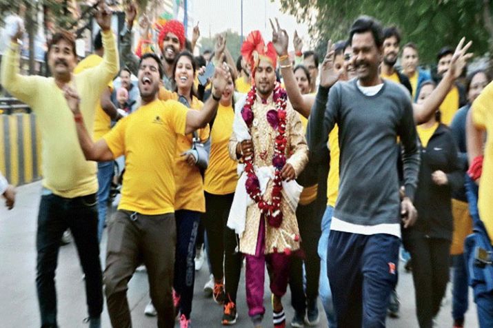 ଇନ୍ଦୋର,୨୧।୧: ବର୍ତ୍ତମାନର ଖାଦ୍ୟପେୟ ଓ ଦୂଷିତ ପରିବେଶକୁ ଆଖି ଆଗରେ ରଖି ଶରୀରକୁ ସୁସ୍ଥ ରଖିବା ପାଇଁ ଲୋକମାନେ ଏବେ ସଜାଗ ହେଲେଣି। ନିଜକୁ ଫିଟ୍ ରଖିବା ପାଇଁ ଲୋକେ ବିଭିନ୍ନ ପ୍ରକାରର ଯୋଗ ସହ ଜିମ୍ ଯାଉଥିବା ବେଳେ ଲଗାତାର କଠିନ ପରିଶ୍ରମ କରୁଛନ୍ତି। ଏହାରି ଭିତରେ ମଧ୍ୟପ୍ରଦେଶ ଇନ୍ଦୋରରେ ଜଣେ ଯୁବକ ଫିଟ୍ନେସ୍କୁ ପ୍ରୋତ୍ସାହିତ କରିବା ପାଇଁ ନିଆରା ଢ଼ଙ୍ଗ ଆପଣାଇଛନ୍ତି। ସୂଚନାଯୋଗ୍ୟ, ସୋମବାର ଇନ୍ଦୋରର ଗଣେଶ ନଗରରେ ରହୁଥିବା ଫିଜିକାଲ ଟ୍ରେନର ନିରଜ ମାଲବିୟଙ୍କ ବିବାହ ଅନୁଷ୍ଠିତ ହୋଇଥିଲା। ନିରଜ ନିଜ ବିବାହକୁ ସ୍ମୃତି କରି ରଖିବାକୁ ଓ ଫିଟ୍ନେସ୍କୁ ପ୍ରୋତ୍ସାହିତ କରିବା ପାଇଁ ନିଆରା ଢ଼ଙ୍ଗ ଆପଣାଇଥିଲେ। ବିବାହକୁ ସ୍ବତନ୍ତ୍ର କରିବା ଲାଗି ବରାଯାତ୍ରୀରେ ଲୋକେ ଦୌଡି ଦୌଡି ଯିବା ପାଇଁ ନିରଜ ଯୋଜନା କରିଥିଲେ। ଏହି ଯୋଜନା ପ୍ରଥମେ ଘରଲୋକଙ୍କୁ ଚକିତ କରିଦେଇଥିଲା। ହେଲେ ଏହା ପଛରେ ଥିବା ନିରଜଙ୍କ ମୂଳ ଉଦ୍ଦେଶ୍ୟକୁ ଜାଣିପାରି ତାଙ୍କ କଥାରେ ଘରଲୋକ ମଧ୍ୟ ସହମତି ପ୍ରକାଶ କରିଥିଲେ। ଏହାପରେ ତାଙ୍କ ବରଯାତ୍ରୀରେ ସମସ୍ତେ ଦୌଡିକି ଯାଇଥିଲେ। ଏପରିକି ନିଜେ ନିରଜ ମଧ୍ୟ ଶେରଓ୍ବାନି ପିନ୍ଧି ଦୀର୍ଘ ୧୧କିଲୋମିଟର ଦୌଡ଼ି ଦୌଡି ବିବାହ କରିବା ପାଇଁ ଝିଅ ଘରେ ପହଞ୍ଚିଥିଲେ। ତାଙ୍କ ବରଯାତ୍ରୀ ଦଶହରା ମୈଦାନରୁ ବାହାରି ସଙ୍ଗମ ନଗର ପର୍ଯ୍ୟନ୍ତ ପହଞ୍ଚିଥିବା ବେଳେ ଏଥିରେ ୫୦ଜଣ ସାମିଲ ହୋଇଥିଲେ।
