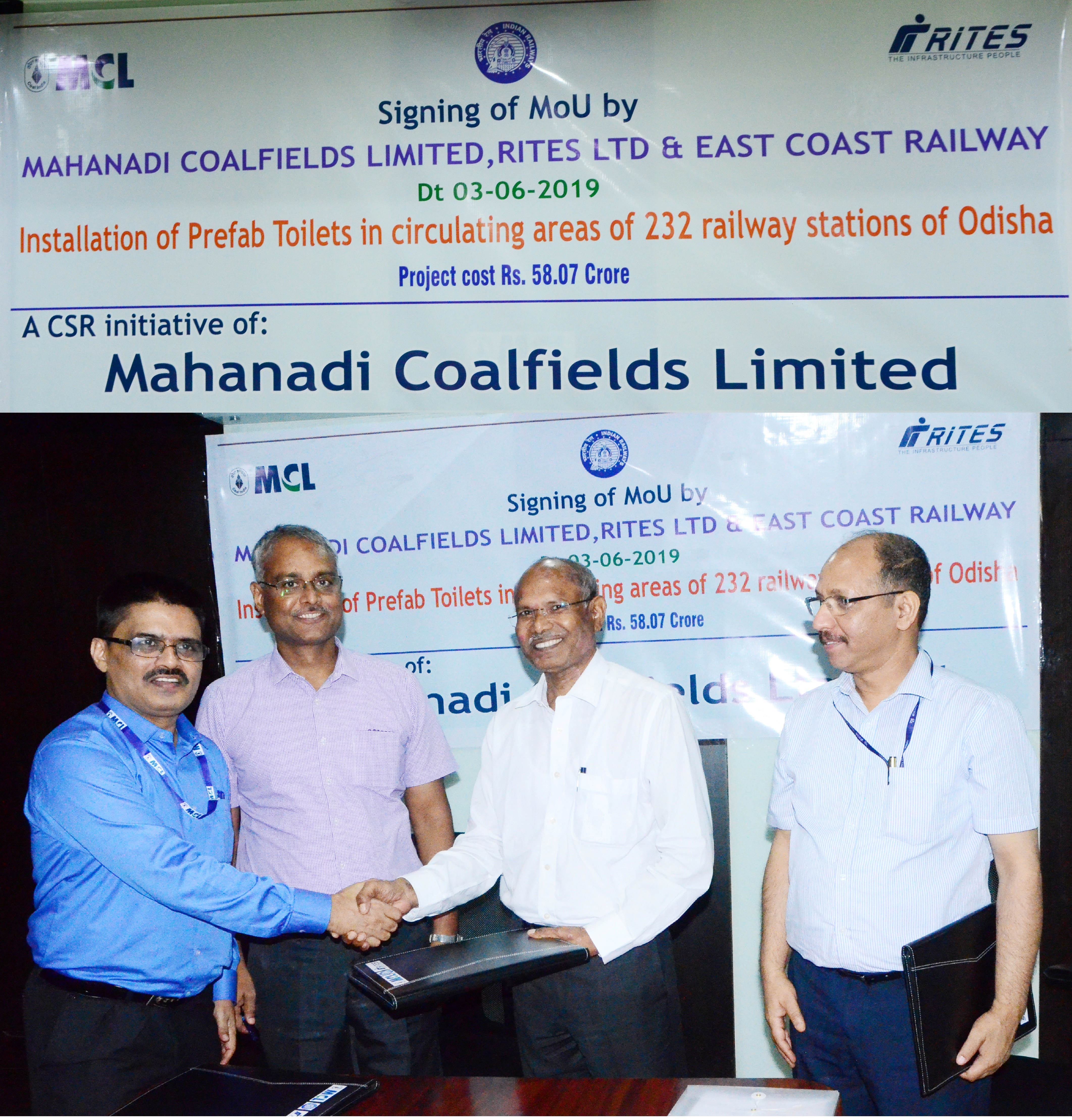 ଭୁବନେଶ୍ୱର,୪-୬: ସ୍ବଚ୍ଛ ଭାରତ ମିଶନ ପଦକ୍ଷେପ ଅନ୍ତର୍ଗତ ୨୩୨ ରେଳ ଷ୍ଟେଶନରେ ପୂର୍ବନିର୍ମିତ ଶୌଚାଳୟ ନିର୍ମାଣ କରାଯିବ। ଏଥି ଲାଗି ପୂର୍ବତଟ ରେଳପଥ, ରାଇଟ୍ସ ଏବଂ ମହାନଦୀ କୋଲ ଫିଲ୍ଡ ଲିମିଟେଡ (ଏମ୍ସିଏଲ୍) ମଧ୍ୟରେ ବୁଝାମଣାପତ୍ର ସ୍ବାକ୍ଷରିତ ହୋଇଛି। ରେଳ ଷ୍ଟେଶନର ବିସ୍ତୃତ ସ୍ଥାନଗୁଡିକରେ ଏହା ନିର୍ମାଣ ହେବ। ସ୍ଥାନୀୟ ଏମ୍ସିଏଲ୍ କାର୍ଯ୍ୟାଳୟଠାରେ ପୂର୍ବତଟ ରେଳପଥ ପ୍ରମୁଖ ଯନ୍ତ୍ରୀ ଏନ୍.ଏସ୍.ଉଇକେ, ଏମ୍ସିଏଲ୍ ସମ୍ବଲପୁର ସିଏସ୍ଆର୍ ମହାପ୍ରବନ୍ଧକ ବି.ସାଇରାମ, ରାଇଟ୍ସ ମହାପ୍ରବନ୍ଧକ ପ୍ରେମ ରଞ୍ଜନ କୁମାର ଏବଂ ପୂର୍ବତଟ ରେଳପଥର ଯୋଜନା ବିଭାଗ ମୁଖ୍ୟଯନ୍ତ୍ରୀ ବ୍ରଜେଶ ମିଶ୍ରଙ୍କ ଉପସ୍ଥିତିରେ ଏହି ଚୁକ୍ତି ସ୍ବାକ୍ଷରିତ ହୋଇଥିଲା। ଏହି ଚୁକ୍ତି ମୁତାବକ ଓଡ଼ିଶାର ୧୨୭, ଦକ୍ଷିଣ ପୂର୍ବ ରେଲଓ୍ବେର ୫୫ ଏବଂ ଦକ୍ଷିଣ ପୂର୍ବ ମଧ୍ୟ ରେଳପଥର ୫ଟି ଷ୍ଟେଶନରେ ଶୌଚାଳୟ ନିର୍ମାଣ କରାଯିବ। ଏହା ଦ୍ୱାରା ରେଳଯାତ୍ରୀଙ୍କ ସମେତ ବିଭିନ୍ନ ଲୋକ ଉପକୃତ ହେବେ। ଏହି ପ୍ରକଳ୍ପର କାର୍ଯ୍ୟକାରୀ ସଂସ୍ଥା ଭାବେ ରାଇଟ୍ସ ନିୟୋଜିତ ହୋଇଛି।