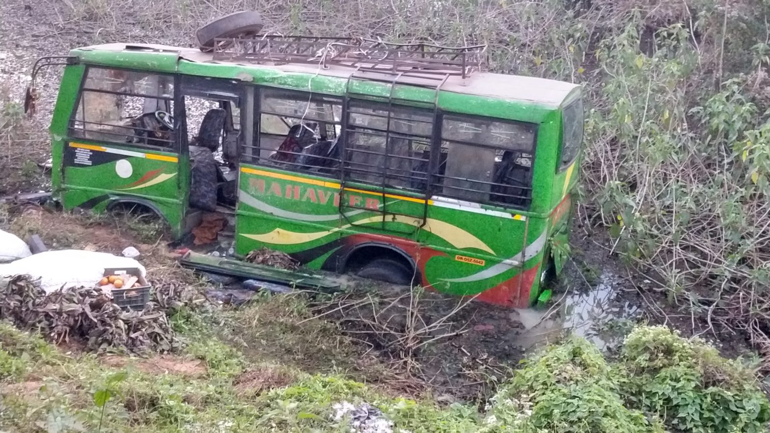 ୩୦ଫୁଟ ତଳକୁ ଖସିଲା ଯାତ୍ରୀବାହୀ ବସ୍‌:୧୨ ଆହତ ୪ ଗୁରୁତର