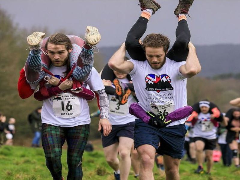ଡ୍ରୋର୍କିଙ୍ଗ୍,୩।୩: ପୃଥିବୀର ବିଭିନ୍ନ ଅଞ୍ଚଳର ଭିନ୍ନ ଭିନ୍ନ ପରମ୍ପରା ରହିଛି। ବ୍ରିଟେନ୍ରେ ଏକ ପରମ୍ପରା ଅନୁସାରେ ସ୍ବାମୀମାନେ ସ୍ତ୍ରୀଙ୍କୁ ପିଠିରେ ବୋହି ଏକ ଉତ୍ସବରେ ଦୌଡ଼ିଥାନ୍ତି। ପ୍ରତିବର୍ଷ ଏହି ଉତ୍ସବ ମାର୍ଚ୍ଚ ମାସରେ ଅନୁଷ୍ଠିତ ହୋଇଥାଏ। ଗତ ୩୦୦ ବର୍ଷ ଧରି ଏହି ପରମ୍ପରା ଏଠାରେ ପାଳିତ ହୋଇ ଆସୁଛି। ଚଳିତ ବର୍ଷ ଏହି ଉତ୍ସବ ଡ୍ରୋର୍କିଙ୍ଗ୍ଠାରେ ଆୟୋଜିତ ହୋଇଥିଲା। ଏହି ଅବସରରେ ୪୦୦ ମିଟର ଦୌଡ଼ ପ୍ରତିଯୋଗୀତା କରାଯାଇଥିଲା। ଏଥିରେ ୧୫୦ ଜଣ ସ୍ବାମୀ ସେମାନଙ୍କ ସ୍ତ୍ରୀଙ୍କୁ ପିଠିରେ ବୋହି ଦୌଡ଼ିଥିଲେ। ବିଜେତାଙ୍କୁ ୧୫ ହଜାର ଟଙ୍କା ପୁରସ୍କାର ପ୍ରଦାନ କରାଯାଇଛି। ସୂଚନାଯୋଗ୍ୟ, ଦୌଡ଼ ପ୍ରତିଯୋଗୀତାର ନିୟମ ଅନୁସାରେ ସ୍ତ୍ରୀଙ୍କ ଓଜନ ୫୦ କିଲୋ ହେବା ଆବଶ୍ୟକ। ତେଣୁ ଏହି ପ୍ରତିଯୋଗୀତା ପାଇଁ ମହିଳାମାନେ ୩ ମାସ ପୂର୍ବରୁ ସେମାନଙ୍କ ଓଜନ କମାଇବାରେ ଲାଗିଥାନ୍ତି।
