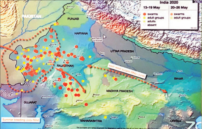 ଖାଦ୍ୟ ଏବଂ କୃଷି ସଙ୍ଗଠନ (ଏଫ୍ଏଓ)ର ସୂଚନା ଅନୁଯାୟୀ, ପଙ୍ଗପାଳ ଦଳ ଛତିଶଗଡ଼ରେ ପହଞ୍ଚତ୍ ସାରିଛନ୍ତି। ଏମାନେ ହେଲେ ମରୁଭୂମି ପଙ୍ଗପାଳ ପ୍ରଜାତି। ପ୍ରାୟ ୨୩ଟି ପଙ୍ଗପାଳ ଦଳ ପଶ୍ଚିମ ଆଫ୍ରିକାରୁ ଆସିଛି। ପୂର୍ବ ଆଫ୍ରିକା ଅତିକ୍ରମ କରି ସେମାନେ ବେଲୁଚିସ୍ତାନ ପରେ ପାକିସ୍ତାନ ଦେଇ ରାଜସ୍ଥାନରେ ପ୍ରବେଶ କରିଥିଲେ। ପରେ ମହାରାଷ୍ଟ୍ର, ହରିୟାଣା, ଉତ୍ତରପ୍ରଦେଶ, ମଧ୍ୟପ୍ରଦେଶ, ଛତିଶଗଡ଼କୁ ପହଞ୍ଚତ୍ ସାରିଲେଣି। ଘଣ୍ଟାକୁ ୧୬ରୁ ୧୯ କି.ମି. ବେଗରେ ଗତି କରୁଥିବା ଏହି ପଙ୍ଗପାଳ ଦଳ ଗୋଟିଏ ଦିନରେ ଅତିକମ୍ରେ ୧୩୦ କି.ମି. ଅତିକ୍ରମ କରୁଛନ୍ତି। ଦିନ ସମୟରେ ଉଡ଼ିବା ସହ ରାତିରେ ଏମାନେ ବିଶ୍ରାମ ନିଅନ୍ତି। ଜଳର ଆସ୍ତରଣ ଥିଲେ ବିଶ୍ରାମ ବଦଳରେ ରାତିରେ ମଧ୍ୟ ଉଡ଼ିଥାନ୍ତି ବୋଲି କେନ୍ଦ୍ର ସୂଚନା ଦେଇଛି। ଗୋଟିଏ ବର୍ଗକିଲୋମିଟର ଆଚ୍ଛାଦିତ କ୍ଷେତ୍ରଫଳରେ ପ୍ରାୟ ୪୦ରୁ ୮୦ ଲକ୍ଷ ସଂଖ୍ୟକ ପଙ୍ଗପାଳ ରହିଥାନ୍ତି। ଗୋଟିଏ ଦିନରେ ୩୫ ହଜାର ଲୋକଙ୍କ ଖାଦ୍ୟକୁ ଏମାନେ ନଷ୍ଟ କରିପାରନ୍ତି। ବଙ୍ଗୋପସାଗରରେ ସୃଷ୍ଟି ହୋଇଥିବା ସାମୁଦ୍ରିକ ଝଡ଼ ଅମ୍ଫନ ଯୋଗୁ ପଙ୍ଗପାଳ ଦଳର ଗତି ପ୍ରଭାବିତ ହୋଇଥିଲା। ଜୁଲାଇ ପର୍ଯ୍ୟନ୍ତ ପଙ୍ଗପାଳ ଦଳର ଉପଦ୍ରବ ରହିବ। ମୌସୁମୀ ବାୟୁର ପ୍ରଭାବରେ ପଙ୍ଗପାଳ ପଶ୍ଚିମାଭିମୁଖୀ ହେବେ ଓ ପ୍ରଜନନ ଆରମ୍ଭ କରିବେ। ଏମାନଙ୍କ ପ୍ରଜନନ ସମୟ ହେଉଛି ଜୁଲାଇରୁ ଅକ୍ଟୋବର ମାସ। ଗୋଟିଏ ମାଈ ମରୁଭୂମି ପଙ୍ଗପାଳ ଥରକରେ ୬୦ରୁ ୮୦ଟି ଅଣ୍ଡା ଦେଇଥାଏ। ବାଲି-କାଦୁଅ ମିଶା ଆଦର୍ର ମାଟିରେ ହିଁ ଏମାନେ ଅଣ୍ଡା ଦିଅନ୍ତି।