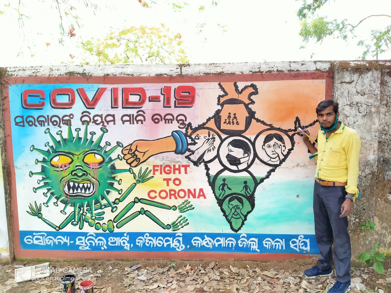 ବାଲିଗୁଡା,୧ା୫(ଡି.ଏନ୍.ଏ.)- ବାଲିଗୁଡା ଉପଖଣ୍ଡ କ.ନୂଆଗାଁର ସୁନୀଲ ନାୟକ ନିଆରା ଢଙ୍ଗରେ କରୋନା ନେଇ ଲୋକଙ୍କୁ ସଚେତନ କରୁଛନ୍ତି। ଆର୍ଥିକ ସହାୟତା ପାଇଁ ସମର୍ଥ ନ ଥିଲେ ମଧ୍ୟ ଅନ୍ତର୍ନିହିତ କଳାକୁ ପାଥେୟ କରି ସେ କରୋନା ମୁକାବିଲା ପାଇଁ ଆଗେଇ ଆସିଛନ୍ତି। ୱାଲ ପେଣ୍ଟିଂ ଜରିଆରେ ଲୋକଙ୍କୁ ବାଣ୍ଟୁଛନ୍ତି ସଚେତନତାର ବାର୍ତ୍ତା। ରଙ୍ଗ କିଣି ବିଭିନ୍ନ ସ୍ଥାନରେ ଅଦ୍ୟାବଧି ୩୦ରୁ ଉର୍ଦ୍ଧ୍ୱ ୱାଲ ପେଣ୍ଠି କରିଛନ୍ତି। ଘରେ ରହିବ, ହାତ ଧୋଇବା, ମାସ୍କ ପିନ୍ଧିବା, ସାମାଜିକ ଦୂରତା ବଜାୟ ରଖିବା ଆଦି ସଚେତନ ବାର୍ତ୍ତା ସହ ପୋଲିସ, ଡାକ୍ତର ଓ ସାମ୍ବାଦିକଙ୍କୁ କରୋନା ଯୋଦ୍ଧା ଭାବେ ଅଭିହିତ କରି ୱାଲ ପେଣ୍ଠି କରିଛନ୍ତି। ଓଡ଼ିଶାରେ ସମସ୍ତ କଳାକାରଙ୍କୁ ଏଭଳି ଅସୁବିଧା ସମୟରେ ସଚେତନତା ପାଇଁ ଆଗେଇ ଆସିବାକୁ ସେ ଆହ୍ବାନ ଦେଇଛନ୍ତି।