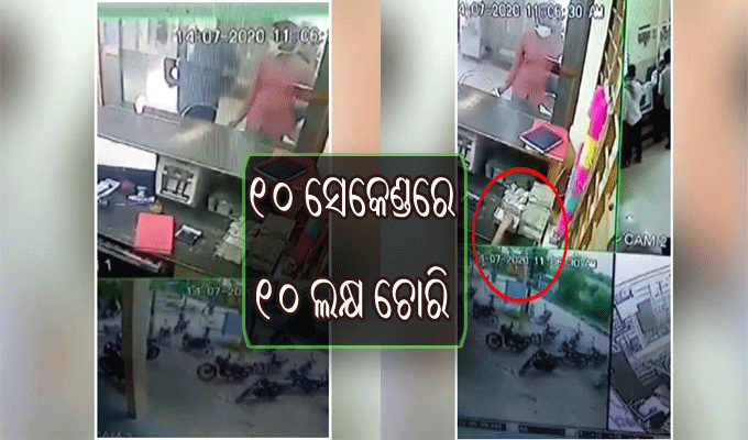 ଉକ୍ତ ବାଳକ ଜଣଙ୍କ ଜଣଙ୍କ ସହ ବ୍ୟାଙ୍କକୁ ଆସିଥିଲା। ସାବଧାନତାର ସହ କ୍ୟାଶ କାଉଣ୍ଟର ପଛକୁ ଯିବା ପରେ ସେଠାରୁ ୧୦ ଲକ୍ଷ ଟଙ୍କା ଚୋରି କରି ଫେରାର ହୋଇଯାଇଥିଲା। ମାତ୍ର ୧୦ ସେକେଣ୍ଡ ମଧ୍ୟରେ ସେ ଏଭଳି କରିଥିବା ଜଣାପଡ଼ିଛି।
