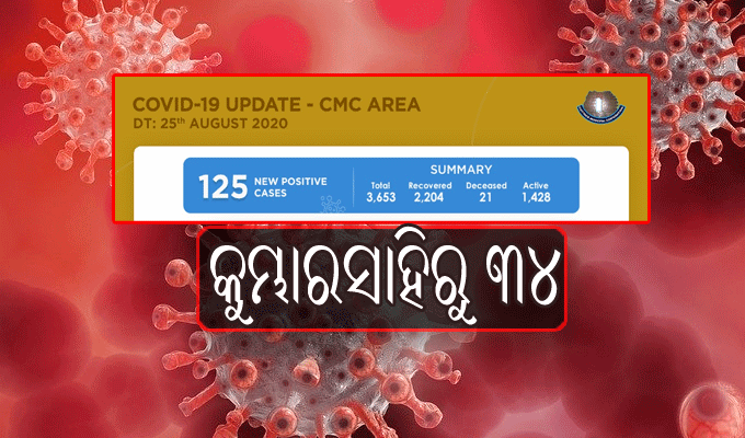କଟକ ଅଫିସ,୨୫।୮: କଟକ ମହାନଗର ନିଗମରୁ ମଙ୍ଗଳବାର ୧୨୫ ନୂଆ କରୋନା ଆକ୍ରାନ୍ତ ଚିହ୍ନଟ ହୋଇଛନ୍ତି। ସେଥିରୁ ୩୪ କୁମ୍ଭାରସାହି କଣ୍ଟେନ୍ମେଣ୍ଟ ଅଞ୍ଚଳର ଥିବା ବେଳେ ୨୪ଜଣ ଇନ୍ଷ୍ଟିଚ୍ୟୁଶନାଲ କ୍ୱାରାଣ୍ଟାଇନ୍, ୩୩ ହୋମ୍ କ୍ୱାରାଣ୍ଟାଇନ୍ ଏବଂ ୩୪ଜଣ ଲୋକାଲ କେସ୍ ରହିଛି। ଏoହାକୁ ମିଶାଇ ସହରରେ ମୋଟ ସଂକ୍ରମିତଙ୍କ ସଂଖ୍ୟା ୩,୬୫୩କୁ ବୃଦ୍ଧି ପାଇଛି। ତନ୍ମଧ୍ୟରୁ ୨୨୦୪ ସୁସ୍ଥ ହୋଇ ଘରକୁ ଫେରିଥିବା ବେଳେ ୧୪୨୮ ଆକ୍ଟିଭ କେସ୍ ରହିଛି। ସେହିଭଳି ୨୧ଜଣଙ୍କ ମୃତ୍ୟୁ ଘଟିଥିବା ସିଏମ୍ସି ପକ୍ଷରୁ ଟୁଇଟ୍ କରି ସୂଚନା ଦିଆଯାଇଛି।