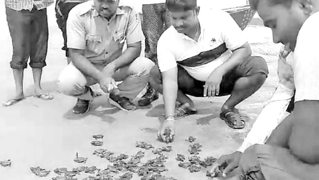 ଲଙ୍ଗଳେଶ୍ୱର, ୩।୫(ଡି.ଏନ.ଏ.) ବାଲିଆପାଳ ବ୍ଲକ ଚୌମୁଖ ବେଳାଭୂମିକୁ ଗତ କିଛିବର୍ଷ ହେଲା ବିଭିନ୍ନ ପ୍ରଜାତିର ଅଲିଭ ରିଡ଼ଲେ ଅଣ୍ଡାଦାନ ପାଇଁ ଉପଯୁକ୍ତ ସ୍ଥାନ ଭାବେ ବାଛିଛନ୍ତି। ରବିବାର ତୃତୀୟଥର ପାଇଁ ବନବିଭାଗ ପକ୍ଷରୁ ଅସ୍ଥାୟୀ ହେଚେରୀରେ ସଂରକ୍ଷିତ ରଖାଯାଇଥିବା ୧୩୫ ଅଣ୍ଡା ମଧ୍ୟରୁ ଜନ୍ମିତ ୧୨୮ ଶାବକକୁ ସମୁଦ୍ରକୁ ଛଡ଼ାଯାଇଛି ା