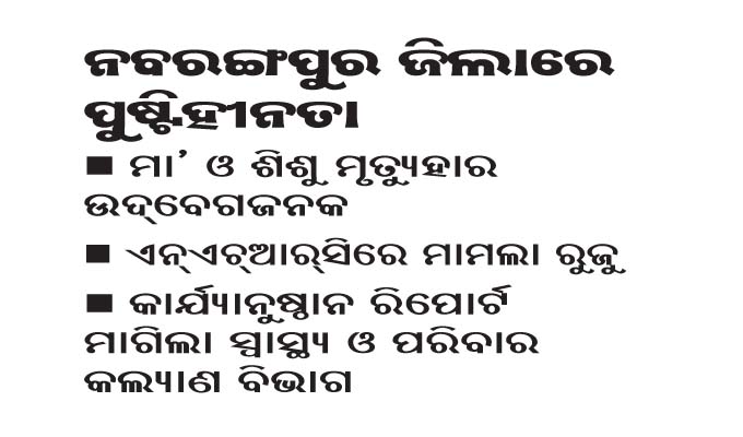 ଯାଜପୁର ଅଫିସ,୨୦ା୬: କେବଳ ଯାଜପୁର ଜିଲା ସୁକିନ୍ଦା ବ୍ଲକର ନଗଡ଼ା ନୁହେଁ, ରାଜ୍ୟର ନବରଙ୍ଗପୁର ଜିଲାରେ ମଧ୍ୟ ପୁଷ୍ଟିହୀନତା କାରଣରୁ ମା’ ଓ ଶିଶୁ ମୃତ୍ୟୁସଂଖ୍ୟା ଉଦ୍ବେଗଜନକ ସ୍ଥିତିରେ ପହଞ୍ଚତ୍ଛି। ଗତ ବର୍ଷକ ମଧ୍ୟରେ ନବରଙ୍ଗପୁର ଜିଲାରେ ୧,୩୫୪ ଶିଶୁ ଓ ୩୮ ଜଣ ମା’ଙ୍କ ପୁଷ୍ଟିହୀନତା କାରଣରୁ ମୃତ୍ୟୁ ଘଟିଛି। ଜନ୍ମରୁ ୫ ବର୍ଷ ମଧ୍ୟରେ ଏହି ଶିଶୁଙ୍କ ମୃତ୍ୟୁ ଘଟିଥିବା ଜଣାପଡ଼ିଛି। ପୁଷ୍ଟିହୀନତା ଦୂର ପାଇଁ ସରକାର ଏକାଧିକ ଯୋଜନା କାର୍ଯ୍ୟକାରୀ କରୁଥିଲେ ବି କୌଣସି ସୁଫଳ ମିଳି ପାରିନାହିଁ। ଏହି ମର୍ମରେ ଜାତୀୟ ମାନବାଧିକାର କମିଶନ (ଏନ୍ଏଚ୍ଆରସି)ରେ ଏକ ମାମଲା ରୁଜୁ ହୋଇଛି। ଉକ୍ତ ମାମଲାର ଶୁଣାଣି କରି କମିଶନ ୮ ସପ୍ତାହ ମଧ୍ୟରେ ଉପଯୁକ୍ତ କାର୍ଯ୍ୟାନୁଷ୍ଠାନ ଗ୍ରହଣ କରି ଆବଶ୍ୟକ ରିପୋର୍ଟ ଦାଖଲ କରିବାକୁ ରାଜ୍ୟ ସରକାରଙ୍କ ସ୍ବାସ୍ଥ୍ୟ ଏବଂ ପରିବାର କଲ୍ୟାଣ ବିଭାଗକୁ ଗତ ୮ ତାରିଖରେ ନିର୍ଦ୍ଦେଶ ଦେଇଥିଲେ। ଏହି କ୍ରମରେ ସ୍ବାସ୍ଥ୍ୟ ଓ ପରିବାର କଲ୍ୟାଣ ବିଭାଗ ସ୍ବତନ୍ତ୍ର ସଚିବ ଅଜିତ କୁମାର ମହାନ୍ତି ଗତ ୧୭ ତାରିଖରେ ମହିଳା ଏବଂ ଶିଶୁ ବିକାଶ ସଚିବ, ପରିବାର କଲ୍ୟାଣ ବିଭାଗର ନିର୍ଦ୍ଦେଶକ ଏବଂ ନବରଙ୍ଗପୁର ଜିଲା ମୁଖ୍ୟ ଚିକିତ୍ସାଧିକାରୀଙ୍କୁ ସବିଶେଷ କାର୍ଯ୍ୟାନୁଷ୍ଠାନ ସମ୍ପର୍କିତ ରିପୋର୍ଟ ଦାଖଲ କରିବାକୁ ନିର୍ଦ୍ଦେଶ ଦେଇଛନ୍ତି।