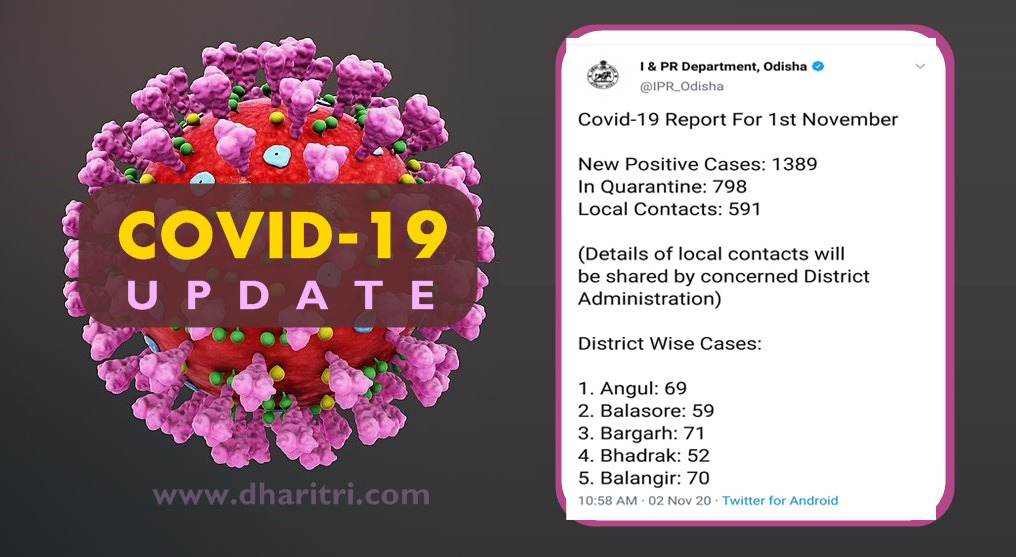 ଭୁବନେଶ୍ୱର,୨ା୧୧(ବ୍ୟୁରୋ): ସୋମବାର ୩୦ ଜିଲାରୁ ୧୩୮୯ ନୂଆ ପଜିଟିଭ୍ ଚିହ୍ନଟ ହୋଇଛନ୍ତି। ଏହାକୁ ମିଶାଇ ରାଜ୍ୟରେ ମୋଟ୍ ଆକ୍ରାନ୍ତଙ୍କ ସଂଖ୍ୟା ୨,୯୩, ୨୧୪ରେ ପହଞ୍ଚିଥିବା ରାଜ୍ୟ ସୂଚନା ଓ ଲୋକ ସମ୍ପର୍କ ବିଭାଗ ସୂଚନା ଦେଇଛି। ଏଥିମଧ୍ୟରୁ କ୍ୱାରାଣ୍ଟାଇନ୍ରୁ ୭୯୮ ଜଣ ଚିହ୍ନଟ ହୋଇଥିବା ବେଳେ ୫୯୧ ଜଣ ସ୍ଥାନୀୟ ସଂକ୍ରମିତ ଅଟନ୍ତି।