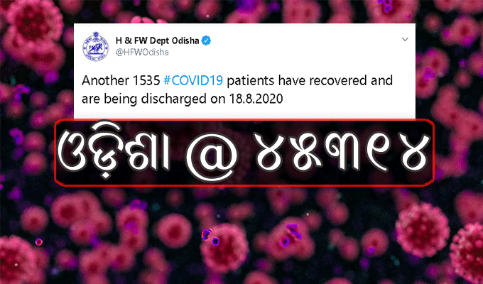 ଭୁବନେଶ୍ୱର,୧୮।୮(ବ୍ୟୁରୋ): ରାଜ୍ୟରେ ମଙ୍ଗଳବାର ୧୫୩୫ଜଣ କରୋନା ଆକ୍ରାନ୍ତ ସୁସ୍ଥ ହୋଇଛନ୍ତି। ସେଥିରୁ ସର୍ବାଧିକ ୨୮୭ଜଣ ଖୋର୍ଦ୍ଧାର ଅଛନ୍ତି। ଏହାଛଡ଼ା ସୁନ୍ଦରଗଡ଼ର ୧୭୮, ଗଞ୍ଜାମର ୧୫୬, କନ୍ଧମାଳର ୧୦୫, ପୁରୀର ୯୬, କଟକର ୮୪, କୋରାପୁଟର ୭୩, ବରଗଡ଼ର ୭୦, ନୟାଗଡ଼ର ୬୩, ମାଲକାନଗିରିର ୫୮, ବାଲେଶ୍ୱରର ୫୨, କଳାହାଣ୍ଡିର ୪୭, ଭଦ୍ରକର ୪୨, ଯାଜପୁରର ୩୯, ଗଜପତିର ୨୭, କେନ୍ଦ୍ରାପଡ଼ାର ୨୦, ସମ୍ବଲପୁରର ୨୦, ଝାରସୁଗୁଡ଼ାର ୧୯, ମୟୂରଭଞ୍ଜର ୧୭, କେନ୍ଦୁଝରର ୧୭, ଢ଼େଙ୍କାନାଳର ୧୫, ରାୟଗଡ଼ାର ୧୪, ନବରଙ୍ଗପୁରର ୧୩, ବଲାଙ୍ଗୀର୭, ବୌଦ୍ଧର ୭, ଜଗତସିଂହପୁରର ୬, ନୂଆପଡ଼ାର ୨, ସୋନପୁରର ଜଣେ ଥିବା ରାଜ୍ୟ ସ୍ବାସ୍ଥ୍ୟ ଓ ପରିବାର କଲ୍ୟାଣ ବିଭାଗ ପକ୍ଷରୁ ଟୁଇଟ୍ କରି ସୂଚନା ଦିଆଯାଇଛି। ଏହାକୁ ମିଶାଇ ରାଜ୍ୟରେ ମୋଟ ଆରୋଗ୍ୟ ସଂଖ୍ୟା ୪୫୩୧୪କୁ ବୃଦ୍ଧି ପାଇଥିବା ବିଭାଗ ପକ୍ଷରୁ କୁହାଯାଇଛି।