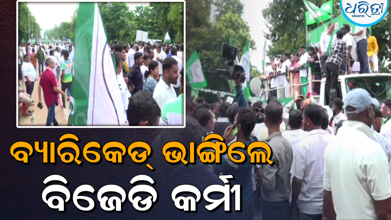 ଭୁବନେଶ୍ୱର,୨୩।୯: ପଞ୍ଚାୟତ ପ୍ରତିନିଧିଙ୍କ କ୍ଷମତା ସଙ୍କୁଚିତ ଅଭିଯୋଗରେ ବିଜେଡି ପ୍ରତିବାଦ କରିଛି। ଏ ନେଇ ବିଧାନସଭା ସମ୍ମୁଖରେ ଜୋରଦାର୍ ବିକ୍ଷୋଭ ପ୍ରଦର୍ଶନ ହୋଇଛି। ଏହି ସମୟରେ ବିଜେଡି କର୍ମୀ ୨ଟି ବ୍ୟାରିକେଡ ଭାଙ୍ଗିଥିବବା ଦେଖିବାକୁ ମିଳିଛି। ଗାନ୍ଧି ମାର୍ଗରେ ପୋଲିସ କର୍ମିଙ୍କ ମଧ୍ୟରେ ଖଣ୍ଡଯୁଦ୍ଧ ସ୍ଥିତି ଉପୁଜିଥିବା ବେଳେ ବିଧାନସଭା ଆଡ଼କୁ ଅଗ୍ରସର ବେଳେ ବିକ୍ଷୋଭକାରୀଙ୍କୁ ପୋଲିସ ଉଠାଇ ନେଇଛି।