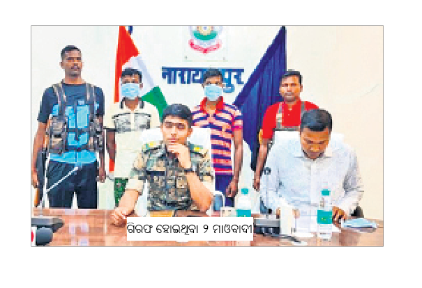 ମାଲକାନଗିରି,୨୪।୪(ଡି.ଏନ୍.ଏ.): ମାଲକାନଗିରି ଜିଲା ସୀମାନ୍ତ ଛତିଶଗଡ଼ର ନାରାୟଣପୁର ପୋଲିସ ୨ଜଣ ହାର୍ଡକୋର ମାଓବାଦୀଙ୍କୁ ଗିରଫ କରିଛି। ସେମାନେ ହେଲେ ଆଶି ରାମ(୩୮) ଓ ସନ୍ନୁ ମାଡଭି(୨୮)। ମାଓବାଦୀ ବିରୋଧୀ ଅପରେଶନ ନାରାୟଣପୁର ଜିଲାରେ ଜାରି ରହିଥିବା ବେଳେ ଶନିବାର ଡିଆର୍ଜି ଯବାନମାନେ ଛୋଟେଙ୍ଗେର ପୋଲିସ ଷ୍ଟେଶନ କ୍ୟାମ୍ପ ପଡ଼ିଥିବା କାଡେମେଟାରୁ ଆଖପାଖ ଅଞ୍ଚଳରେ ସର୍ଚ୍ଚ ଅପରେଶନ କରୁଥିଲେ। ଏହି ସମୟରେ ଭଟବେଡା ଗ୍ରାମ ଜଙ୍ଗଲରେ ୨ ଜଣ ସନ୍ଦିଗ୍ଧ ଲୁଚି ରହିଥିବା ଯବାନମାନେ ଦେଖିବାକୁ ପାଇଥିଲେ। ଯବାନଙ୍କୁ ଦେଖି ଆଶି ଓ ସନ୍ନୁ ଦୌଡ଼ି ପଳାଇବାକୁ ଉଦ୍ୟମ କରିଥିଲେ। ତେବେ ଯବାନମାନେ ଉଭୟଙ୍କୁ କାବୁ କରି ନେଇଥିଲେ। ସେମାନେ ମାଓବାଦୀ ସଙ୍ଗଠନରେ କାର୍ଯ୍ୟ କରୁଥିବା, ପୂର୍ବରୁ ଅନେକ ହିଂସାରେ ଜଡ଼ିତ ରହିବା ସହ ଦୁଇଜଣ ଆଇଟିବିପି ଯବାନଙ୍କୁ ହତ୍ୟା ଘଟଣାରେ ସାମିଲ ଥିବା ପଚରାଉଚରା ବେଳେ ପୋଲିସ ନିକଟରେ ଉଭୟେ ସ୍ବୀକାର କରିଛନ୍ତି।