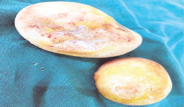 ମାଲକାନଗିରି,୪ା୭(ଦୁର୍ଯ୍ୟୋଧନ ପାତ୍ର): ମାଲକାନଗିରି ଜିଲା କୋରୁକୋଣ୍ଡା ବ୍ଲକ ଚିମିଟାପାଲ୍ଲୀ ଗ୍ରାମର ଶୁକ୍ରା ମୁଦୁଲି(୫୫) ଦୀର୍ଘ ବର୍ଷ ହେଲା ପେଟ ଯନ୍ତ୍ରଣା ଭୋଗୁଥିଲେ। ଏଥିସହ ତାଙ୍କ ପେଟ ଦିନକୁ ଦିନ ବୃଦ୍ଧି ପାଇବାରେ ଲାଗିଥିଲା। ସେ ବହୁ ଚେରମୂଳୀ ଔଷଧ ବ୍ୟବହାର କରୁଥିଲେ ମଧ୍ୟ ସେଥିରୁ ସୁଫଳ ମଳି ନ ଥିଲା। ଶେଷରେ ସେ ମାଲକାନଗିରି ଜିଲା ମୁଖ୍ୟ ଚିକିତ୍ସାଳୟରେ ଚିକିତ୍ସିତ ହେବାକୁ ଆସିଥିବା ବେଳେ ତାଙ୍କ ପେଟ ଫଟୋ ଉଠିବା ପରେ ଦୁଇଟି ମାଂସ ପିଣ୍ଡୁଳା ଥିବା ଡାକ୍ତର ସପନ କୁମାର ଡିଣ୍ଡା ଜାଣିବାକୁ ପାଇଥିଲେ। ଶୁକ୍ରାଙ୍କ ର ସୋମବାର ଅସ୍ତ୍ରୋପଚାର କରି ପେଟରୁ ଗୋଟିଏ ୧୧୦୦ ଗ୍ରାମ ଓ ଅନ୍ୟଟି ୮୦୦ ଗ୍ରାମର ଦୁଇଟି ମାଂସ ପିଣ୍ଡୁଳା ବାହାର କରାଯାଇଥିଲା। ଅସ୍ତ୍ରୋପଚାର ପରେ ଶୁକ୍ରା ସୁସ୍ଥ ଥିବା ଡାକ୍ତର ଡିଣ୍ଡା କହିଛନ୍ତି।