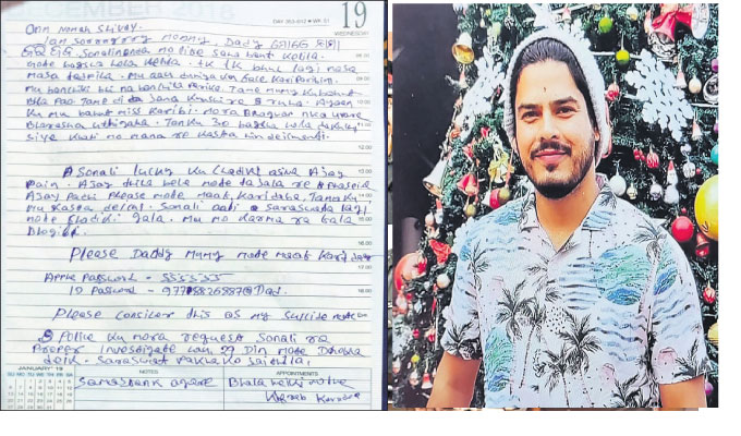 ସୌମ୍ୟଙ୍କ ରୁମ୍ରୁ ମିଳିଥିବା ସୁଇସାଇଡାଲ ନୋଟ୍ରେ ରହିଛି ପ୍ରତାରଣାର କାହାଣୀ। ସେଥିରେ ଲେଖାଯାଇଛି, ‘ଓମ୍ ନମଃ ଶିବାୟ। ଆଇ ଆମ୍ ସରି ମମି, ଡାଡି। ମତେ କ୍ଷମା କରିଦେବ। ସୋନାଲି ମୋ ଲାଇଫ୍ ସହ ଗୋଟିଏ ବର୍ଷ ହେଲା ବହୁତ ଖେଳିଲା। ଟିକେ ଟିକେ ଭୁଲ୍ ଲାଗି ମାସ ମାସ ତଡ୍ପାଇଲା। ମୁଁ ଆଉ ଦୁନିଆକୁ ଫେସ୍ କରିପାରିବିନି। ମୁଁ ବଞ୍ଚତ୍କି ବି ନ ବଞ୍ଚତ୍ଲା ପରି ଜୀବନ ବିତାଉଛି। ଡାଡି, ତମେ ମମିକୁ ବହୁତ ଭଲପାଅ। ତମେ ଦୁଇଜଣ ଖୁସିରେ ରୁହ। ଆୟାନ୍କୁ ମୁଁ ବହୁତ୍ ମିସ୍ କରିବି। ମୋର ଭଗବାନଙ୍କ ଉପରେ ଭରସା ତୁଟିଗଲା। ଠାକୁରଙ୍କୁ ୩୦ବର୍ଷ ହେଲା ଡାକୁଥିଲି, କିନ୍ତୁ ସିଏ ଖାଲି ମୋ ମନରେ କଷ୍ଟ ହିଁ ଦେଇଛନ୍ତି। ସୋନାଲି ଲକିକୁ ଛାଡ଼ିକି ଆସିଲା ଅଜୟ ପାଇଁ। ଅଜୟ ଥିଲାବେଳେ ମୋତେ ତା’ ଜାଲରେ ଫସାଇଦେଲା। ଅଜୟ ପାଢ଼ୀ ପ୍ଲିଜ୍ ମୋତେ ମାଫ୍ କରିଦେବ। ତମକୁ ମୁଁ ବହୁତ କଷ୍ଟ ଦେଇଛି। ସୋନାଲି ଆଜି ସାରସ୍ବତ ପାଇଁ ମୋତେ ଛାଡ଼ିକି ଗଲା। ମୁଁ ମୋ’ କର୍ମର ଫଳ ଭୋଗିବି। ପ୍ଲିଜ୍ ଡାଡି, ମମି ମୋତେ ମାଫ୍ କରିଦେବ। ଏହାକୁ ମୋ ସୁଇସାଇଡ୍ ନୋଟ ରୂପରେ ଗ୍ରହଣ କରିବ। ପୋଲିସକୁ ମୋର ଅନୁରୋଧ, ସୋନାଲିର ଠିକ୍ ତଦନ୍ତ ହେଉ। ୨୯ଦିନ ମୋତେ ଧୋକା ଦେଇ ସେ ସାରସ୍ବତ ପାଖକୁ ଯାଇଥିଲା। ସମସ୍ତଙ୍କ ଆଗରେ ଭଲ ହେଇକି ମୋତେ ଖରାପ କରିଦେଲା।’