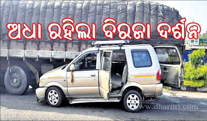 ଚଣ୍ଡିଖୋଲ/ଛତିଆ,୧୭ା୧୦(ଡି.ଏନ୍.ଏ.): ମା’ ବିରଜାଙ୍କ ଦର୍ଶନ ପାଇଁ ଯାଜପୁର ବିରଜା କ୍ଷେତ୍ରକୁ ବାହାରିଥିଲେ ଭୁବନେଶ୍ୱର ଶହୀଦନଗର ଅଞ୍ଚଳର ଏକ ପରିବାର। ହେଲେ ମା’ଙ୍କ ଦର୍ଶନ ପୂର୍ବରୁ ଘଟିଲା ମର୍ମନ୍ତୁଦ ସଡ଼କ ଦୁର୍ଘଟଣା। ଫଳରେ ଅକାଳରେ ଚାଲିଗଲା ୨ ଯାଆଙ୍କ ଜୀବନ। ମୃତ ୨ ଯାଆ ହେଲେ ଭୁବନେଶ୍ୱର ଶହୀଦ ନଗର ଅଞ୍ଚଳର ରଜନୀକାନ୍ତ ପାଢ଼ୀଙ୍କ ସ୍ତ୍ରୀ ଗୀତାଞ୍ଜଳି ପାଢ଼ୀ(୬୬) ଓ ଅବନୀକାନ୍ତ ପାଢ଼ୀଙ୍କ ସ୍ତ୍ରୀ ଶୁଚିସ୍ମିତା ପାଢ଼ୀ(୫୩)। ୧୬ ନଂ. ଜାତୀୟ ରାଜପଥର ଯାଜପୁର ଜିଲା ବୈରୀ ଥାନା ଅନ୍ତର୍ଗତ ଛତିଆ ନିକଟରେ ରବିବାର ସକାଳ ପ୍ରାୟ ୮ଟାରେ ଘଟିଛି ଏହି ମର୍ମନ୍ତୁଦ ସଡ଼କ ଦୁର୍ଘଟଣା। ମୃତ ମହିଳା ଦ୍ୱୟ ପୂର୍ବତନ ମନ୍ତ୍ରୀ ତଥା ଭାଜପା ନେତ୍ରୀ ସୁରମା ପାଢ଼ୀଙ୍କ ଭାଉଜ ବୋଲି ଜଣାପଡ଼ିଛି।