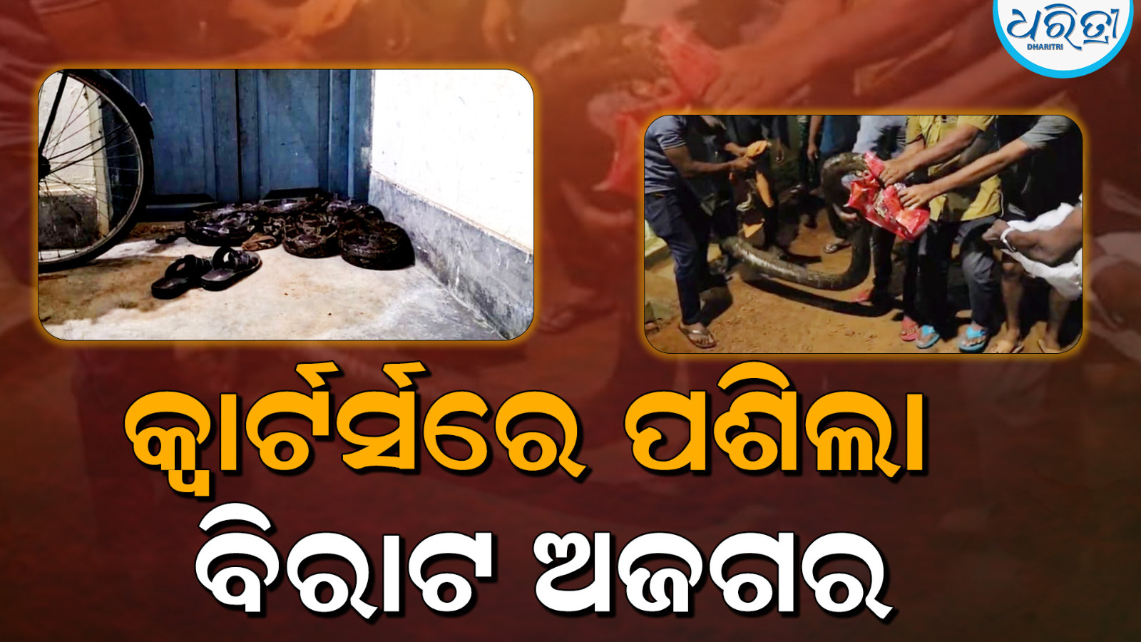 ଖଲ୍ଲିକୋଟ,୯।୯(ପ୍ରଶାନ୍ତ କୁମାର ମିଶ୍ର):ଖଲ୍ଲିକୋଟ ଗୋଷ୍ଠୀ ସ୍ବାସ୍ଥ୍ୟକେନ୍ଦ୍ର ପରିସରରେ ଥିବା କ୍ୱାର୍ଟରରେ ବିରାଟ ଅଜଗର ସାପ। ବନ ବିଭାଗ କର୍ମଚାରୀ ଉଦ୍ଧାର କରି ଜଙ୍ଗଲରେ ଛାଡିଛନ୍ତି। ଖଲ୍ଲିକୋଟ ମେଡିକାଲର କର୍ମଚାରୀ ପଦ୍ମନାଭ ରାଓ ନିଜ କ୍ୱାର୍ଟର ଭିତରେ ଥିବାବେଳେ ସୋମବାର ରାତିରେ ଏକ ବିରାଟ ଅଜଗର ସାପ ପଶି ଯାଇଥିଲା। ଅଜଗର ସାପକୁ ଦେଖି ସେ ଭୟଭୀତ ହୋଇ ଘର ଭିତରେ କବାଟ ବନ୍ଦ କରି ରହିଥିଲେ। ସାପଟି ବାହାର ପଟୁ କବାଟକୁ ଲାଗି ଶୋଇ ରହିଥିଲା। ଏହି ଖବର ପ୍ରଚାରିତ ହେବା ମାତ୍ରେ ସାପକୁ ଦେଖିବା ପାଇଁ ଧୀରେ ଧୀରେ ଭିଡ ବଢିବାକୁ ଲାଗିଲା। ଏହା ପରେ ଖବର ପାଇ ବନ ବିଭାଗର ୪ ଜଣ କର୍ମଚାରୀ ପହଞ୍ଚି ଅଜଗରଟିକୁ ଉଦ୍ଧାର କରିଥିଲେ। ଅଜଗର ସାପଟି ୨୦ ଫୁଟ ଲମ୍ବ ହୋଇଥିବାବେଳେ ୪୦ କେଜି ଓଜନର ବୋଲି ବନ କର୍ମଚାରୀ କହିଛନ୍ତି । ସାପଟିକୁ ସୁରକ୍ଷିତ ଭାବେ ଏକ ଅଖା ଭିତରେ ରଖି ବନ ବିଭାଗର ଗାଡିରେ ନେଇ ନିକଟସ୍ଥ ଜଙ୍ଗଲରେ ଛାଡ଼ିଥିବା ଜଣାପଡ଼ିଛି।
