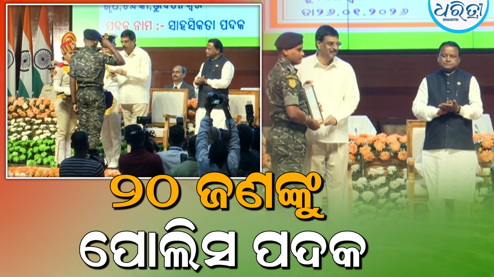 ଭୁବନେଶ୍ୱର,୨୬।୧: ଉଲ୍ଲେଖନୀୟ ସେବା ପାଇଁ ୨୦ ଜଣଙ୍କୁ ମିଳିଲା ପୋଲିସ ପଦକ। ଏହି ପଦକ ରାଜ୍ୟପାଳ ପ୍ରଦାନ କରିଛନ୍ତି। ବର୍ଗ-୧ରେ IPS ନୀତି ଶେଖର, ସତ୍ୟଜିତ ନାୟକଙ୍କୁ ମିଳିଲା ପଦକ। ବର୍ଗ-୨ରେ ପୁରୀ ଏସ୍ପି ପ୍ରତୀକ ସିଂହଙ୍କୁ ରାଜ୍ୟପାଳ ପଦକ ପ୍ରଦାନ କରାଯାଇଛି।