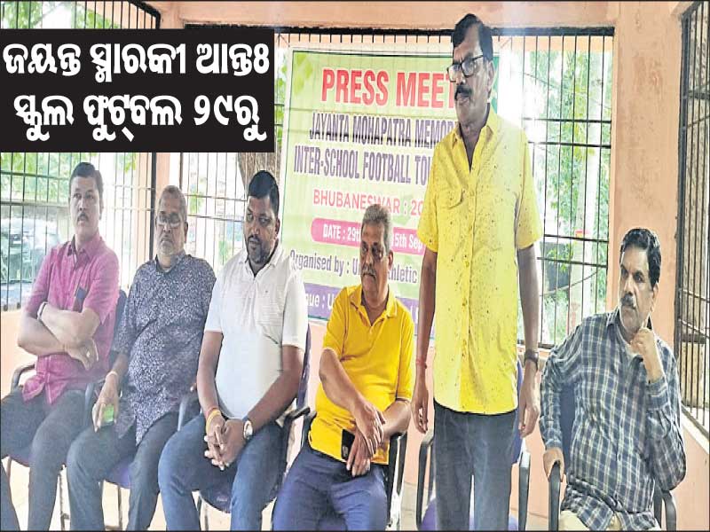 ଭୁବନେଶ୍ୱର, ୨୮।୮ (ତପନ ସ୍ବାଇଁ): ୟୁନିଟ-୬ ଆଥ୍ଲେଟିକ୍ ଆସୋସିଏଶନ ଆନୁକୂଲ୍ୟରେ ଜୟନ୍ତ ମହାପାତ୍ର ସ୍ମାରକୀ ଆନ୍ତଃ-ସ୍କୁଲ ଫୁଟବଲ ଟୁର୍ନାମେଣ୍ଟ ଚଳିତ ମାସ ୨୯ ତାରିଖରେ ଆରମ୍ଭ ହେବ। ୟୁନିଟ-୬ସ୍ଥିତ ସରକାରୀ ହାଇସ୍କୁଲ ପଡ଼ିଆରେ ଏହା ସେପ୍ଟେମ୍ବର ୧୫ ପର୍ଯ୍ୟନ୍ତ ଚାଲିବ।