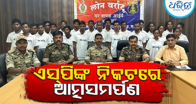 ମାଲକାନଗିରି,୨୯ା୪(ଦୁର୍ଯ୍ୟୋଧନ ପାତ୍ର): ମାଲକାନଗିରି ଜିଲା ସୀମାନ୍ତ ଛତିଶଗଡ଼ ଦାନ୍ତେୱାଡାରେ ସୋମବାର ୨୩ ମାଓବାଦୀ ଆତ୍ମସମର୍ପଣ କରିଛନ୍ତି। ଲୋନ୍ ଭାରାଟୁ ଅଭିଯାନରେ ପ୍ରଭାବିତ ହୋଇ ଆତ୍ମସମର୍ପଣ କରିଥିବା ଜଣାପଡ଼ିଛି।