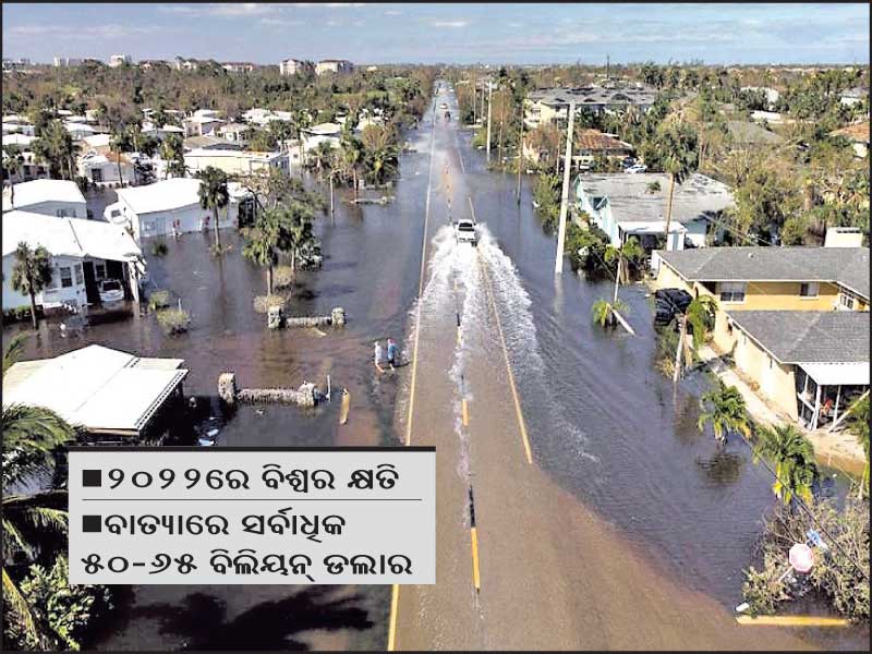 ବାତ୍ୟା ବ୍ୟତୀତ ୟୁରୋପରେ ଓ୍ବିଣ୍ଟର ଷ୍ଟର୍ମ, ଅଷ୍ଟ୍ରେଲିଆ ଏବଂ ସାଉଥ୍ ଆଫ୍ରିକାରେ ବନ୍ୟା, ଫ୍ରାନ୍ସରେ ପ୍ରବଳରୁ ଅତି ପ୍ରବଳ ବର୍ଷା ଯୋଗୁ ବିଶ୍ୱର ସବୁଠୁ ଶକ୍ତିଶାଳୀ ରାଷ୍ଟ୍ର ଆମେରିକାର ଚଳିତବର୍ଷ ୧୧୫ ବିଲିୟନ ଡଲାରର କ୍ଷତି ଘଟିଛି। ଏଥିମଧ୍ୟରୁ ମନୁଷ୍ୟକୃତ ବିପର୍ଯ୍ୟୟ କାରଣରୁ ୭ବିଲିୟନ୍ ଡଲାର କ୍ଷତି ହୋଇଛି। ଚଳିତବର୍ଷ ବିପର୍ଯ୍ୟୟଜନିତ କ୍ଷତି ସର୍ବାଧିକ ଥିବାବେଳେ ଗତବର୍ଷ ଏହା ୧୨୧ ବିଲିୟନ୍ ଡଲାର ଆକଳନ କରାଯାଇଥିଲା। ଜଳବାୟୁ ପରିବର୍ତ୍ତନ ଏଥିଲାଗି ମୁଖ୍ୟଭାବେ ଦାୟୀ ବୋଲି ସୁଇସ୍ ରେ’ର ମୁଖ୍ୟ ମାର୍ଟିନ ବରଟୋଗ କହିଛନ୍ତି।