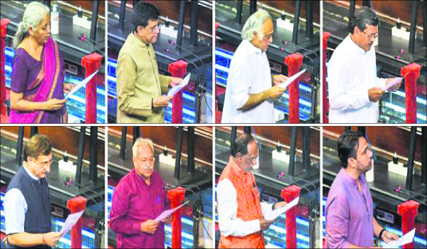 ନୂଆଦିଲ୍ଲୀ,୯ା୭ :କେନ୍ଦ୍ର ମନ୍ତ୍ରୀ ନିର୍ମଳା ସୀତାରାମନ, ପୀୟୂଷ ଗୋୟଲ, ବିଜେଡି ନେତା ମାନସ ମଙ୍ଗରାଜ ଏବଂ ସୁଲତା ଦେଓଙ୍କ ସମେତ ୨୭ ଜଣ ନବନିର୍ବାଚିତ ରାଜ ସଭ୍ୟ ସଦସ୍ୟ ଶୁକ୍ରବାର ଶପଥ ଗ୍ରହଣ କରିଛନ୍ତି। ରାଜ୍ୟ ସଭା ଅଧ୍ୟକ୍ଷ ଏମ୍. ଭେଙ୍କାୟା ନାଇଡୁ ତାଙ୍କ ଚାମ୍ବରରେ ଏହି ନବନିର୍ବାଚିତ ସଦସ୍ୟମାନଙ୍କୁ ସମ୍ବିଧାନର ଆବଶ୍ୟକତା ଅନୁଯାୟୀ କାର୍ଯ୍ୟ କରିବା ନିମନ୍ତେ ଶପଥ ପାଠ କରାଇଥିଲେ। ମୋଟ ୫୭ଜଣ ନବନିର୍ବାଚିତଙ୍କ ମଧ୍ୟରୁ ୧୦ ରାଜ୍ୟର ୨୭ଜଣ ୯ ଭାଷାରେ ତଥା ହିନ୍ଦୀରେ ୧୨ଜଣ, ଇଂଲିଶ୍ରେ ୪, ସଂସ୍କୃତ, କନ୍ନଡ଼, ମରାଠୀ, ଓଡ଼ିଆରେ ୨ଜଣ ଲେଖାଏ ଏବଂ ପଞ୍ଜାବୀ, ତାମିଲ, ତେଲୁଗୁରେ ଜଣେ ଲେଖାଏ ସଦସ୍ୟ ଶପଥ ନେଇଛନ୍ତି। ନିକଟରେ ୪ଜଣ ନୂଆ ସଦସ୍ୟ ଶପଥ ନେଇସାରିଛନ୍ତି। ଏହି ଅବସରରେ ରାଜ୍ୟ ସଭା ଅଧ୍ୟକ୍ଷ ନାଇଡୁ କହିଛନ୍ତି ଯେ, ଏଯାଏ ଶପଥ ନେଇ ନ ଥିବା ନିର୍ବାଚିତ ସଦସ୍ୟମାନେ ମଧ୍ୟ ଆସନ୍ତା ୧୮ ତାରିଖରେ ହେବାକୁ ଥିବା ରାଷ୍ଟ୍ରପତି ନିର୍ବାଚନରେ ଭାଗନେଇପାରିବେ। ଏହାର କାରଣ ସମ୍ପର୍କରେ ସେ ସ୍ପଷ୍ଟ କରିଦେଇଛନ୍ତି ଯେ, ରାଜ୍ୟ ସଭା ନିର୍ବାଚନରେ ଜଣେ ବିଜେତା ଘୋଷଣା ହେବା ଦିନଠାରୁ ତାଙ୍କୁ ଗୃହର ସଦସ୍ୟ ଭାବେ ବିବେଚନା କରାଯାଇଥାଏ। ତେବେ ଗୃହ ଏବଂ ଏହାର କମିଟି କାର୍ଯ୍ୟ ପ୍ରକ୍ରିୟାରେ ଅଂଶଗ୍ରହଣ ନିମନ୍ତେ ନବନିର୍ବାଚିତ ସଦସ୍ୟଙ୍କୁ ଶପଥ ପାଠ କରାଯାଇଥାଏ ବୋଲି ନାଇଡୁ କହିଛନ୍ତି। ଶୁକ୍ରବାର ଶପଥ ନେଇଥିବା ନୂଆ ଏବଂ ପୁନଃ ନିର୍ବାଚିତ ସଦସ୍ୟମାନଙ୍କ ମଧ୍ୟରେ ଜୟରାମ ରମେଶ, ବିବେକ କେ ତଙ୍ଖା, ମୁକୁଲ ଓ୍ବାସନିକ୍ (କଂଗ୍ରେସ), ସୁରେନ୍ଦ୍ର ସିଂ ନାଗର, କେ. ଲକ୍ଷ୍ମଣ, ଲକ୍ଷ୍ମୀକାନ୍ତ ବାଜପେୟୀ (ଭାଜପା), ଜୟନ୍ତ ଚୌଧାରୀ, କଳ୍ପନା ସାଇନି ଏବଂ ଆର୍. ଧରମାର ପ୍ରମୁଖ ରହିଛନ୍ତି।