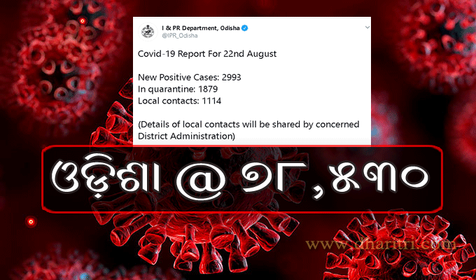 ଭୁବନେଶ୍ୱର,୨୩।୮(ବ୍ୟୁରୋ): ଓଡ଼ିଶାରେ ବେଲଗାମ ହୋଇପଡ଼ିଛି କରୋନା। ରବିବାର ରାଜ୍ୟରେ ୨,୯୯୩ କରୋନା ଆକ୍ରାନ୍ତ ଚିହ୍ନଟ ହୋଇଛନ୍ତି। ସେଥିରୁ ୧,୮୭୯ କ୍ୱାରାଣ୍ଟାଇନ୍ର ଥିବା ବେଳେ ୧,୧୧୪ ଲୋକାଲ କେସ୍ ରହିଛି। ଏହାକୁ ମିଶାଇ ରାଜ୍ୟରେ ମୋଟ ସଂକ୍ରମିତଙ୍କ ସଂଖ୍ୟା ୭୮,୫୩୦କୁ ବୃଦ୍ଧି ପାଇଛି।