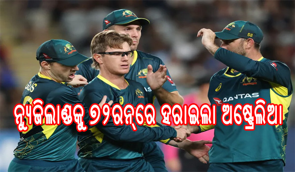 ଅକ୍ଲାଣ୍ଡ(ନ୍ୟୁଜିଲାଣ୍ଡ),୨୩ା୨: ଆଡାମ ଜାମ୍ପାଙ୍କ ଚମତ୍କାର ବୋଲିଂ ଯୋଗୁ ଦ୍ୱିତୀୟ ଅନ୍ତର୍ଜାତୀୟ ଟି୨୦ କ୍ରିକେଟ ମ୍ୟାଚରେ ଅଷ୍ଟ୍ରେଲିଆ ୭୨ ରନ୍ରେ ନ୍ୟୁଜିଲାଣ୍ଡକୁ ପରାସ୍ତ କରିଛି। ଏଥି ସହିତ ଦଳ ୨-୦ରେ ଅଗ୍ରଣୀ ଲାଭ କରିବା ସହ ୩ ମ୍ୟାଚ ବିଶିଷ୍ଟ ସିରିଜ ଆଗୁଆ କବ୍ଜା କରିନେଇଛି।