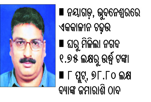 ଭୁବନେଶ୍ୱର, (ବ୍ୟୁରୋ)/ ରଣପୁର,୧୬ା୧୨(ସ୍ବ.ପ୍ର.):ପୋଲିସ ବିଭାଗରେ କେତେଜଣ ଅଧିକାରୀ ଲାଞ୍ଚ କାରବାର କରି କୋଟି କୋଟି ଟଙ୍କାର ଆୟ ବହିର୍ଭୂତ ସମ୍ପତ୍ତି ଠୁଳ କରୁଛନ୍ତି। ବିଗତ ଦିନରେ ଭିଜିଲାନ୍ସ ଏକାଧିକ ପୋଲିସ କର୍ମଚାରୀଙ୍କୁ ଧରିବା ପରେ ସେମାନଙ୍କର ଅମାପ ସମ୍ପତ୍ତି ପଦାକୁ ଆସିଛି। ଗୁରୁବାର ଟୁଇନ୍ ସିଟି କମିଶନରେଟ ପୋଲିସର ଭୁବନେଶ୍ୱର ତମାଣ୍ଡୋ ଥାନାରେ କାର୍ଯ୍ୟରତ ସବ୍ଇନ୍ସପେକ୍ଟର (ଏସ୍ଆଇ) ଅଭିମନ୍ୟୁ ଚୌଧୁରୀଙ୍କ କାର୍ଯ୍ୟାଳୟ ଏବଂ ଘର ସମେତ ନୟାଗଡ଼ ଓ ଭୁବନେଶ୍ୱରର ୩ଟି ସ୍ଥାନରେ ଭିଜିଲାନ୍ସ ପକ୍ଷରୁ ଚଢ଼ାଉ କରାଯାଇଛି। ଏହି ଚଢ଼ାଉରେ ଭିଜିଲାନ୍ସର ୩ଜଣ ଡିଏସ୍ପି, ୧୧ଜଣ ଇନ୍ସପେକ୍ଟର, ୬ଜଣ ଏଏସ୍ଆଇ ଏବଂ ଅନ୍ୟ କର୍ମଚାରୀ ସାମିଲ ରହିଛନ୍ତି।